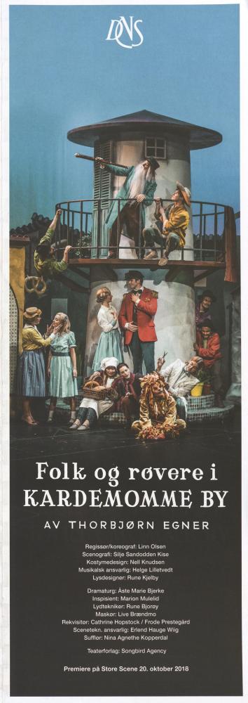 Forestillingsprogram for Den Nationale Scenes produksjon Folk og røvere i Kardemomme by (2018)