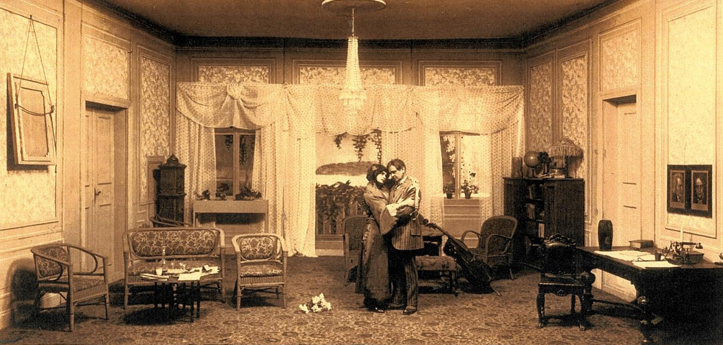 Fotografi fra Stavanger Faste Scenes oppsetning av"Kjærlighetens farce" (1920)