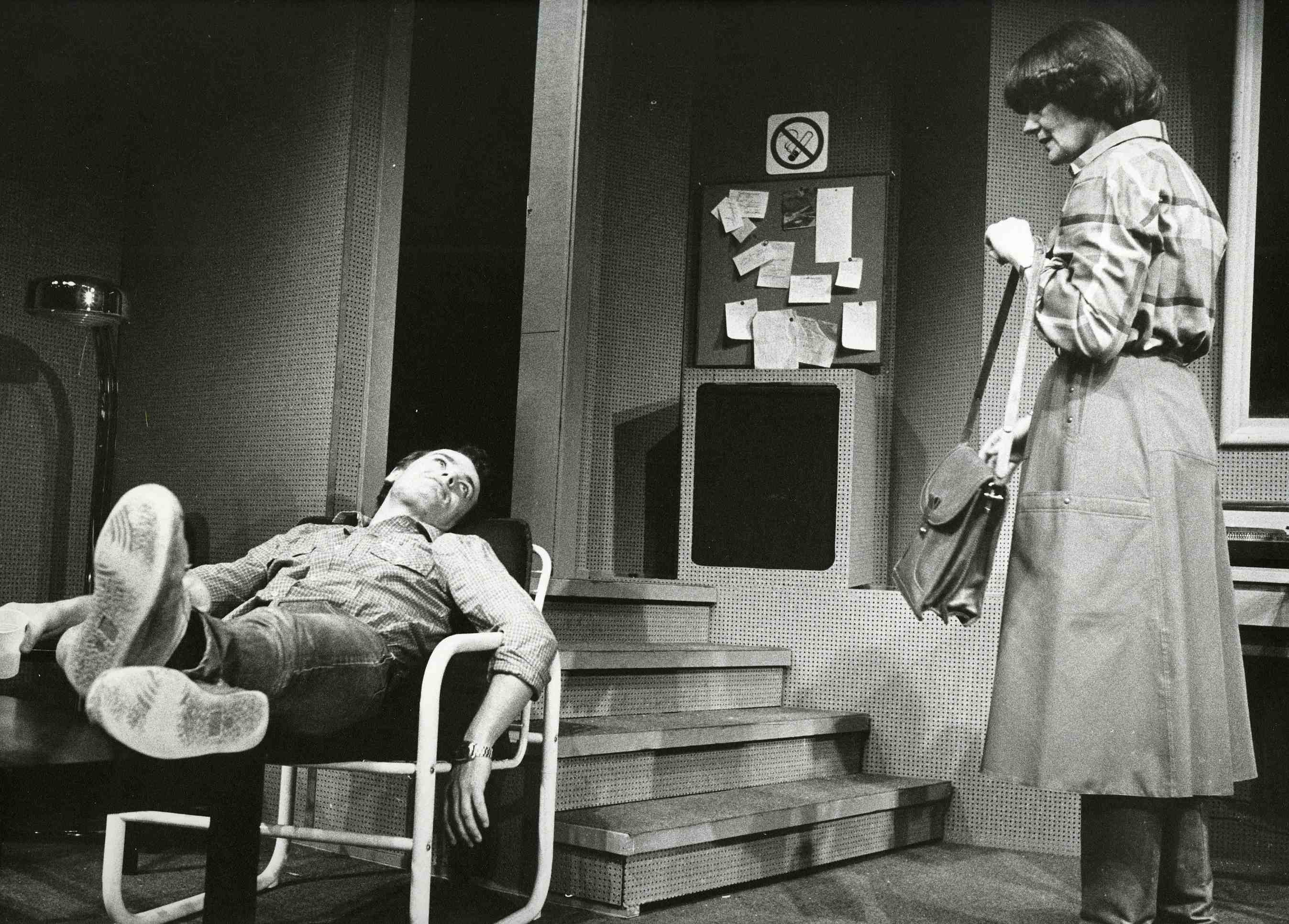 Fotografi fra Oslo Nye Teaters produksjon Ordet er fritt, Hr. Statsråd (1984)