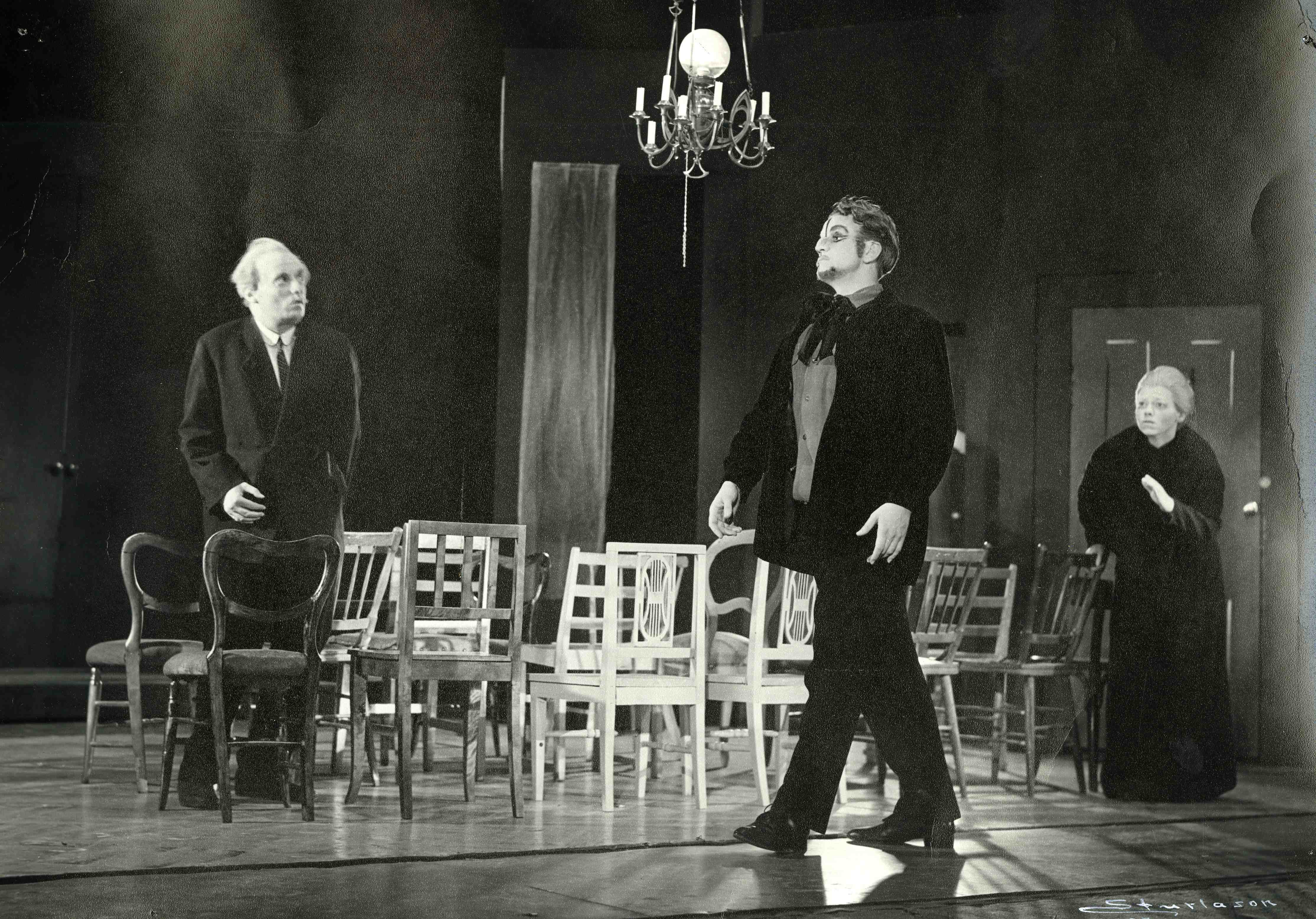 Fotografi fra Det Nye Teaters produksjon Stolene (1957)