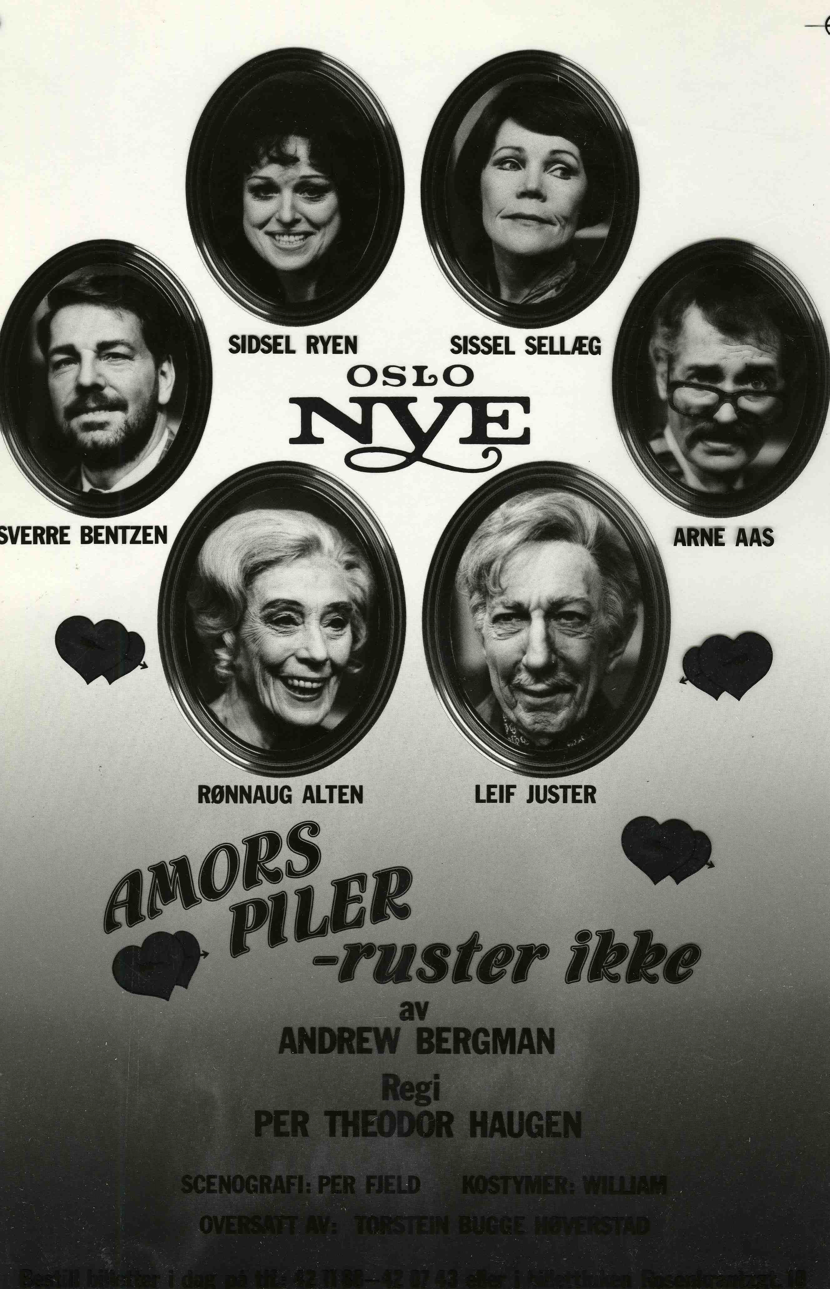Plakat for Oslo Nye Teaters produksjon Amors piler - ruster ikke (1987) .