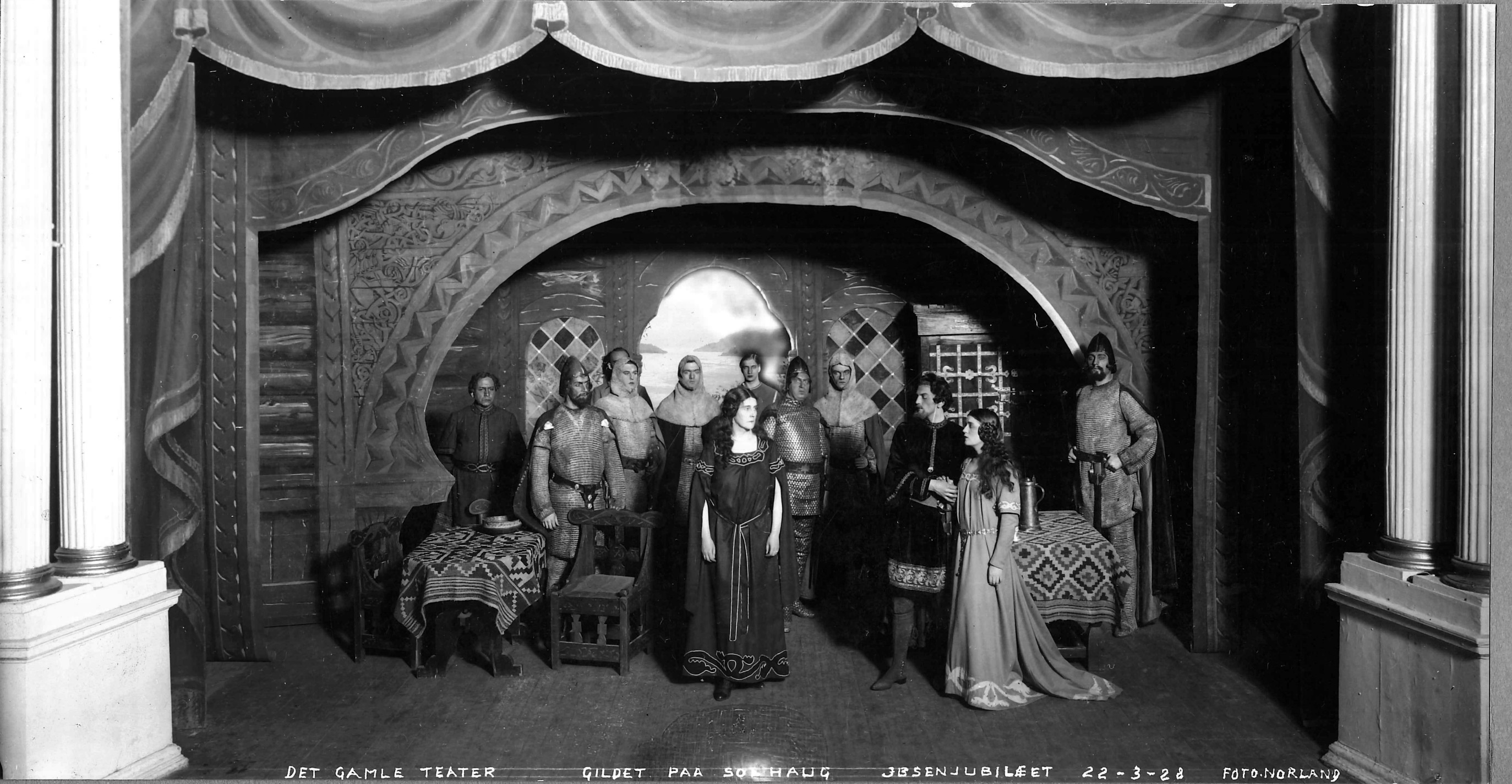 Fotografi fra Den Nationale Scenes produksjon Gildet paa Solhaug (1928)
