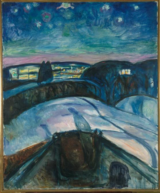Digital gjengivelse av Edvard Munchs oljemaleri Stjernenatt (1922-1924).