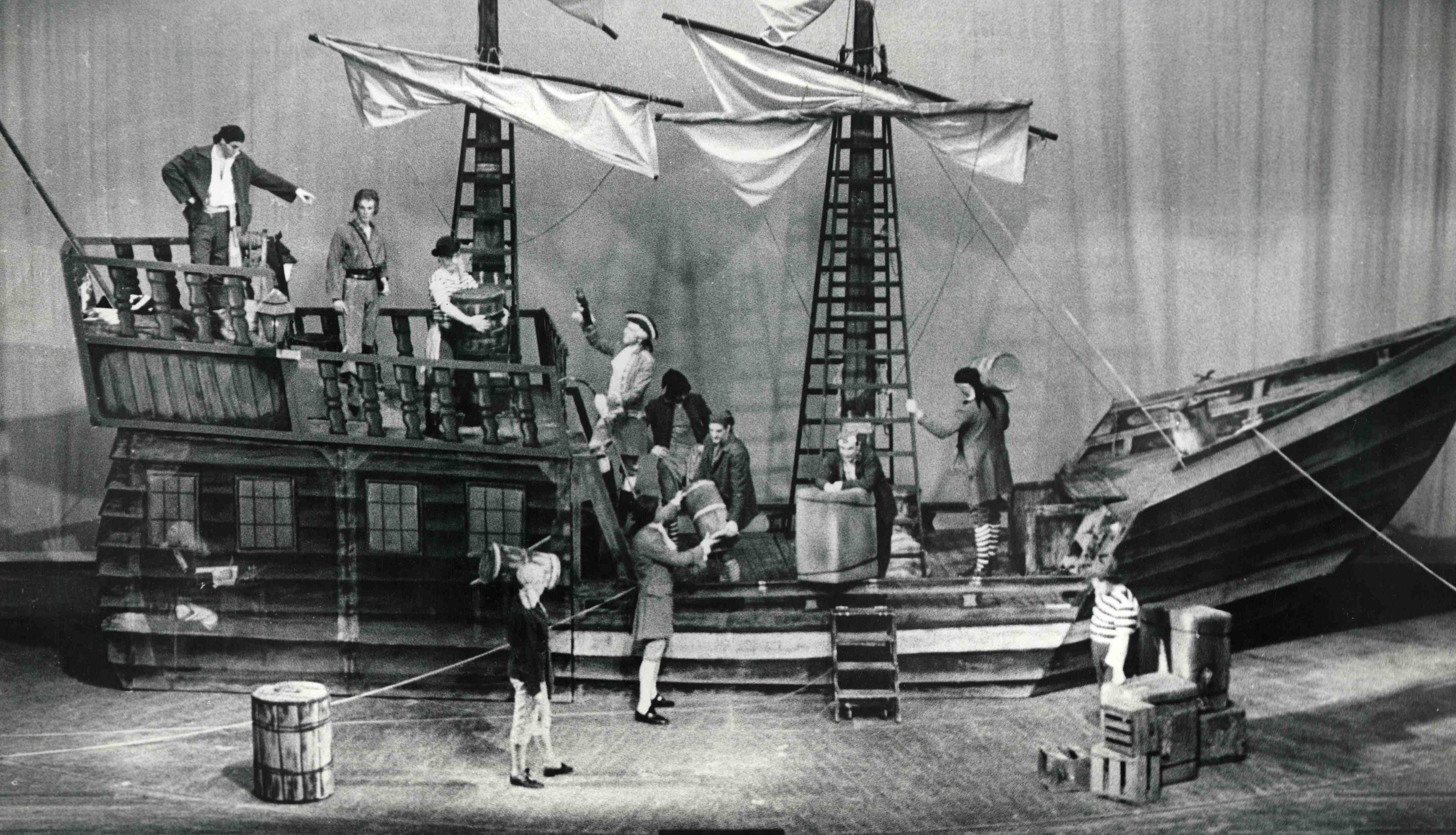 Fotografi fra Oslo Nye Teaters produksjon Skatten på sjørøverøya (1967).