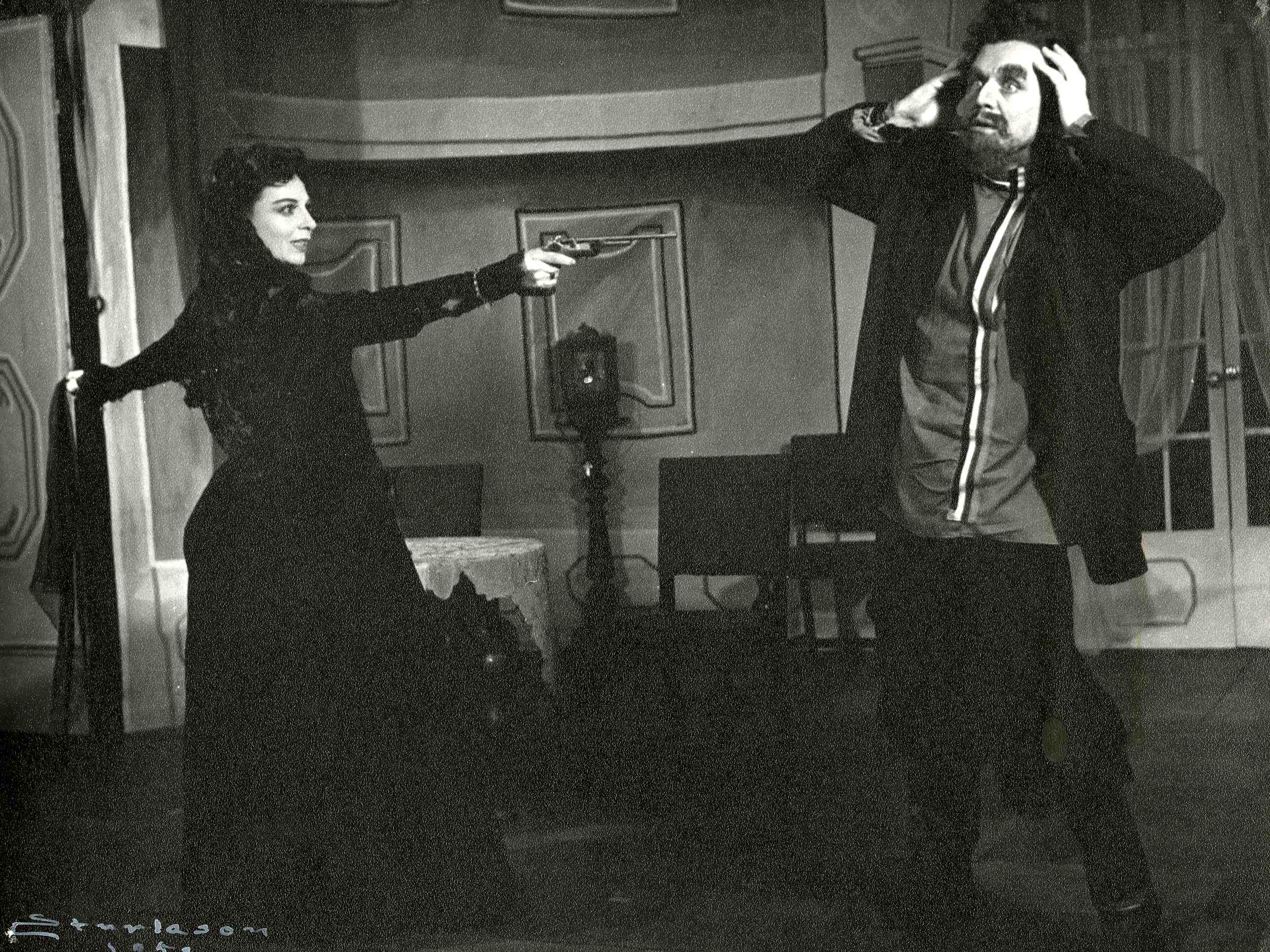 Fotografi fra Det Nye Teaters produksjon Bjørnen (1953).