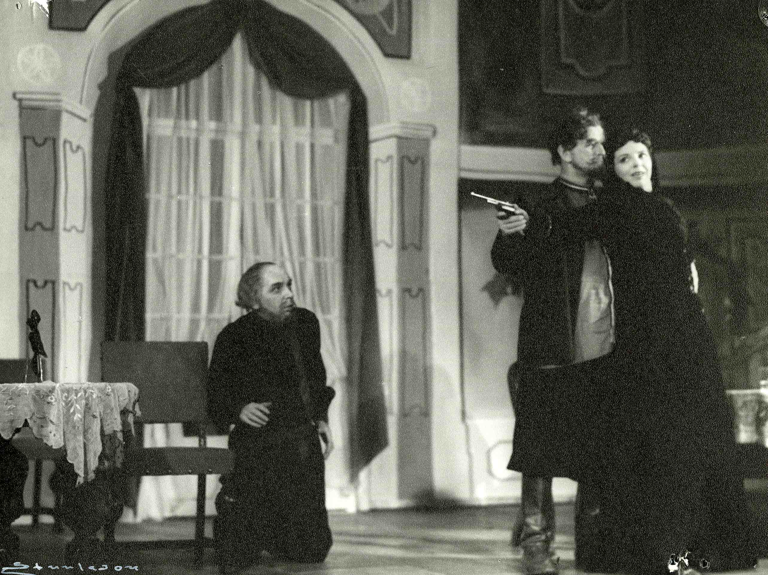 Fotografi fra Det Nye Teaters produksjon Bjørnen (1953).