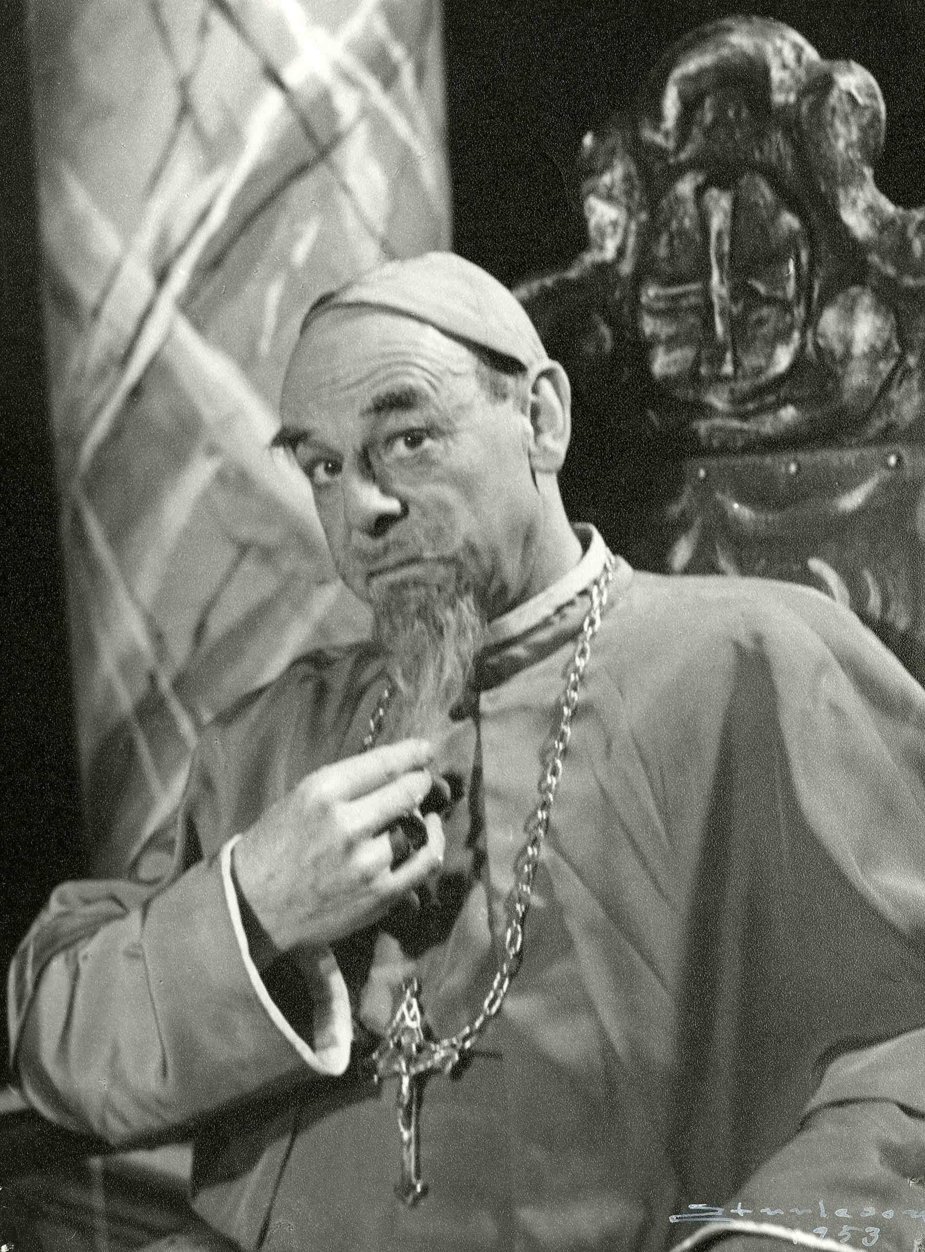 Fotografi fra Det Nye Teaters produksjon Kardinalenes middag (1953).