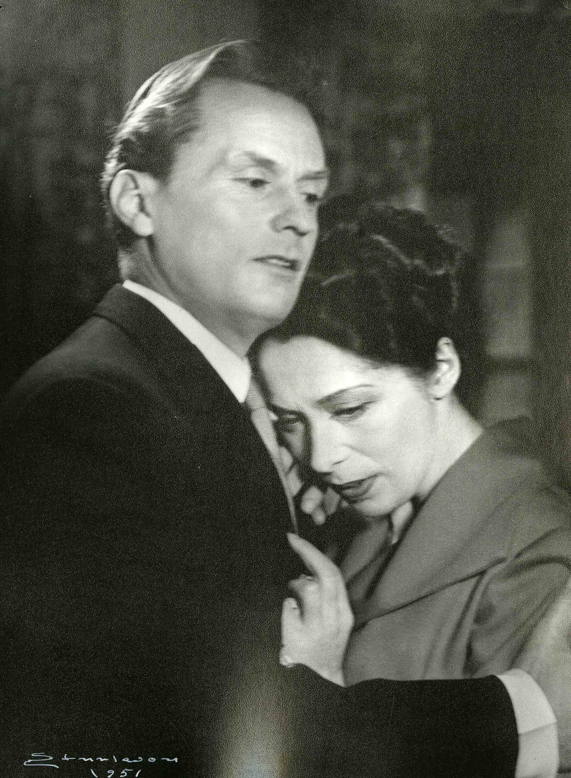 Fotografi fra Det Nye Teaters produksjon Hjemme klokken 7 (1951).