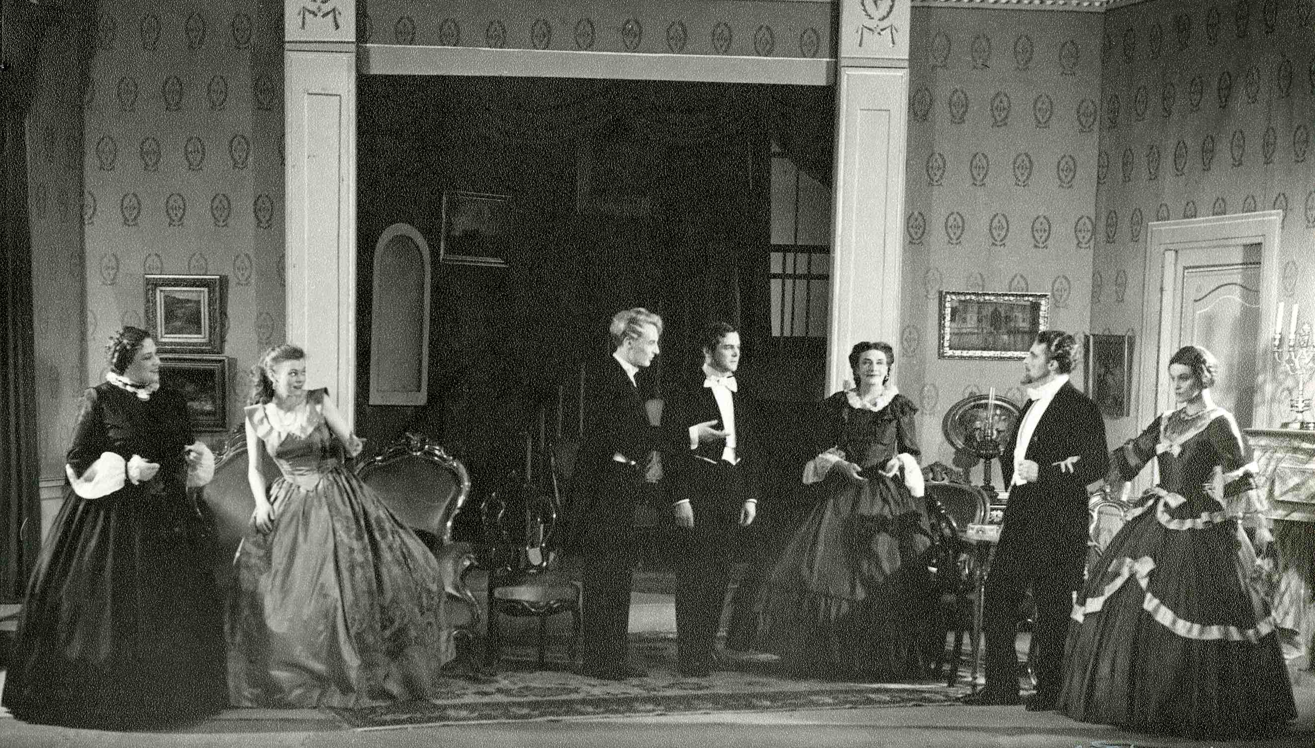 Fotografi fra Det Nye Teaters produksjon Arvingen (1952).