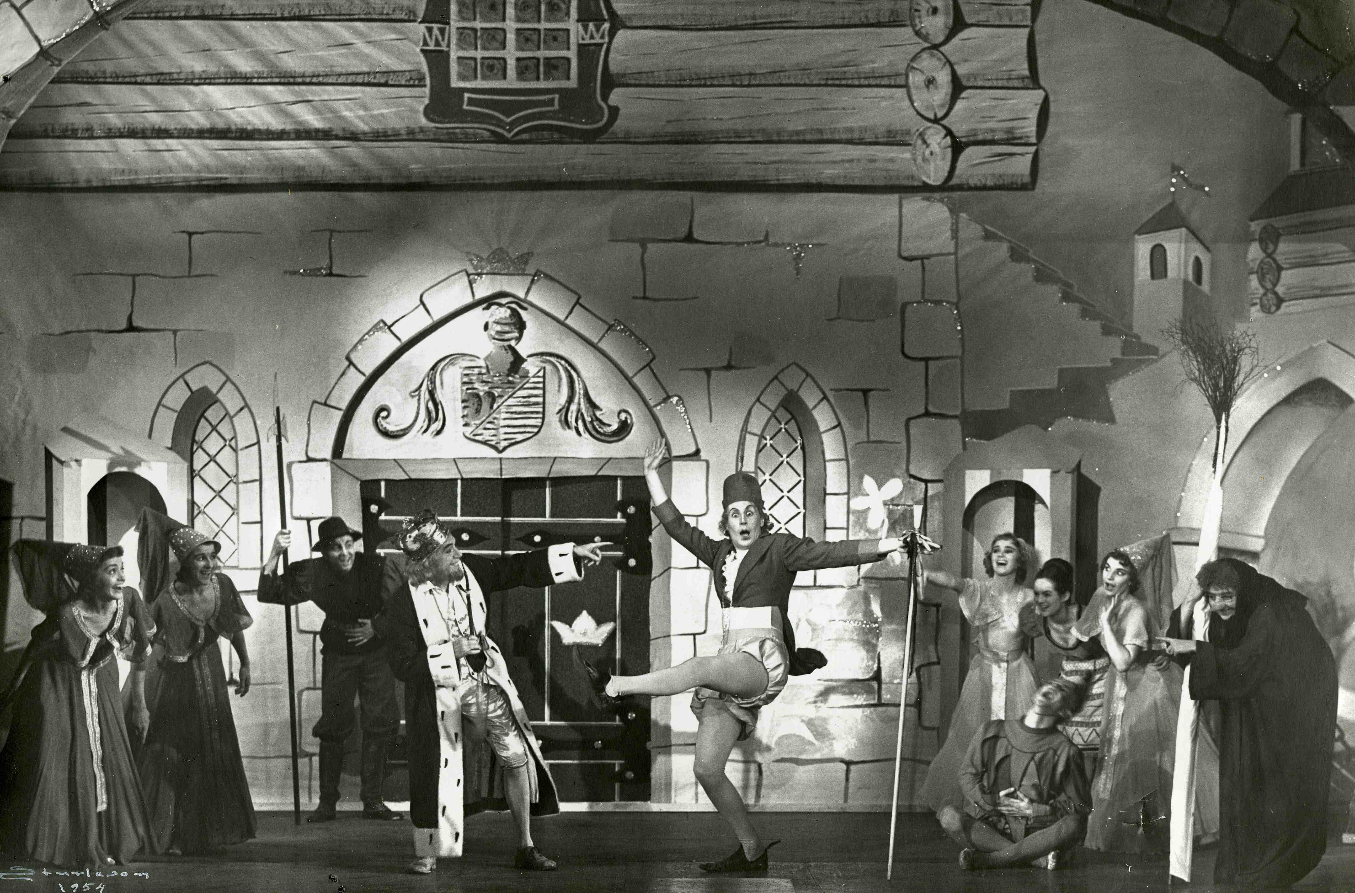 Fotografi fra Det Nye Teaters produksjon Tryllekosten (1954).
