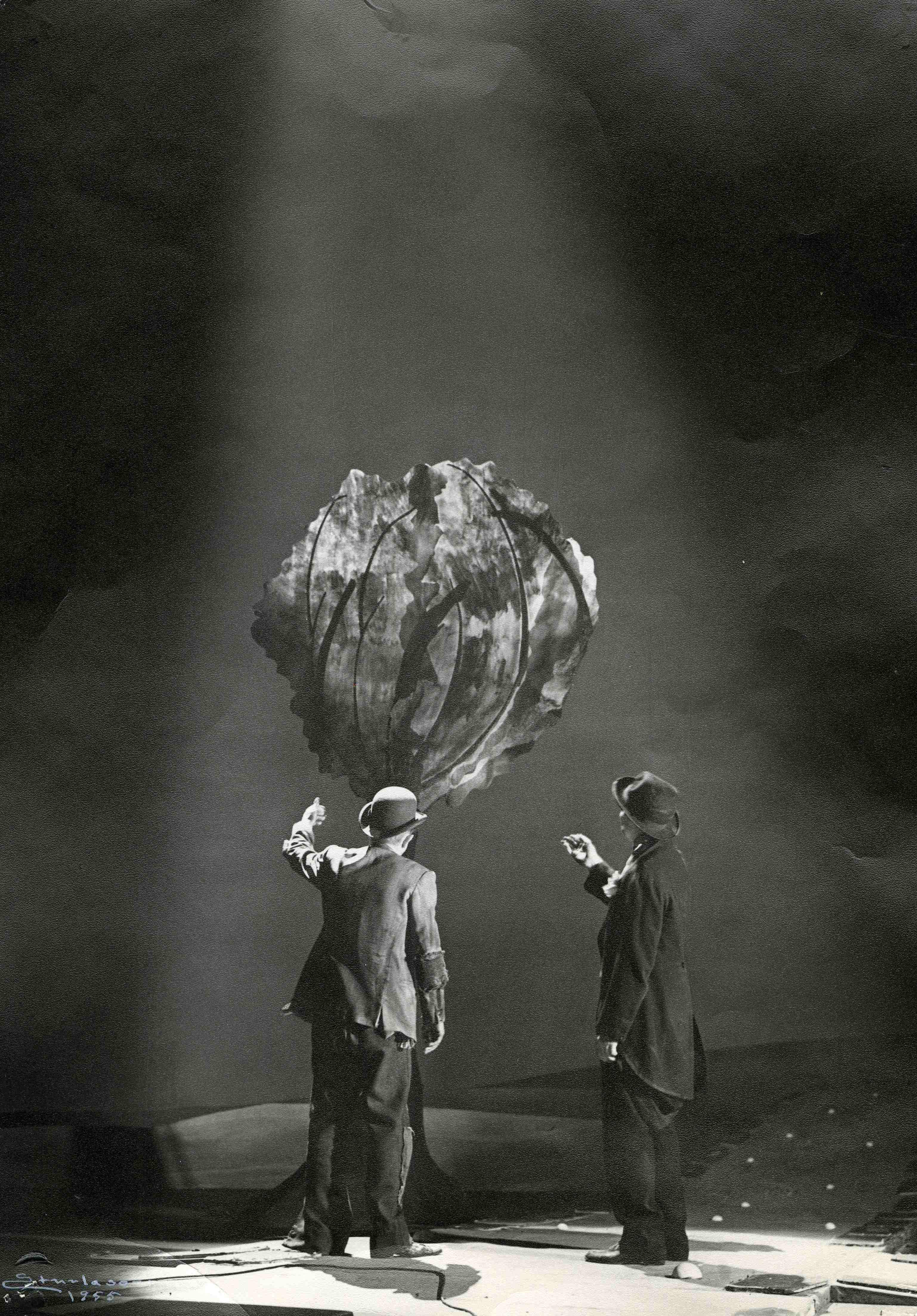 Fotografi fra Det Nye Teaters produksjon Mens vi venter på Godot (1955).