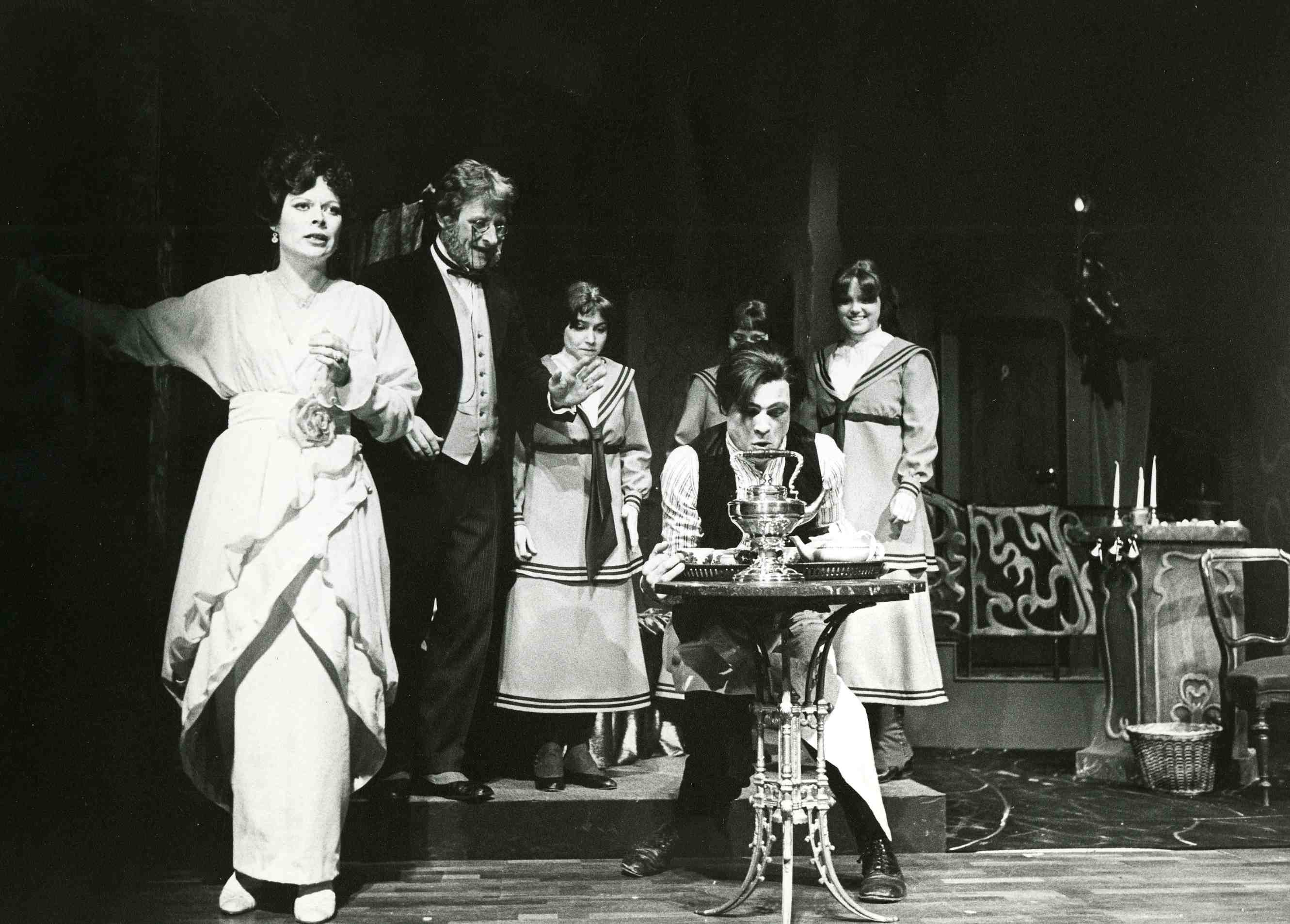 Fotografi fra Oslo Nye Teaters produksjon Åh, for en natt (Hotel Paradiso)(1982).