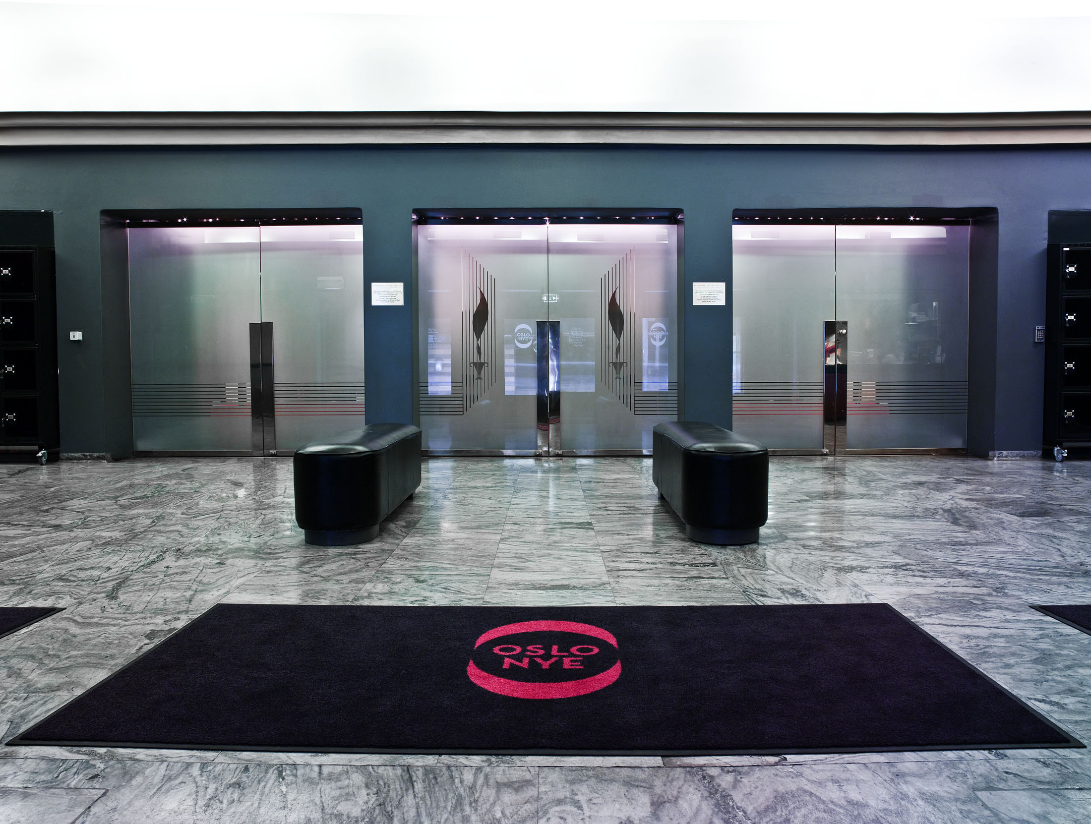 Fotografi av innsiden av inngangspartiet til Hovedscenen i Oslo Nye Teater.