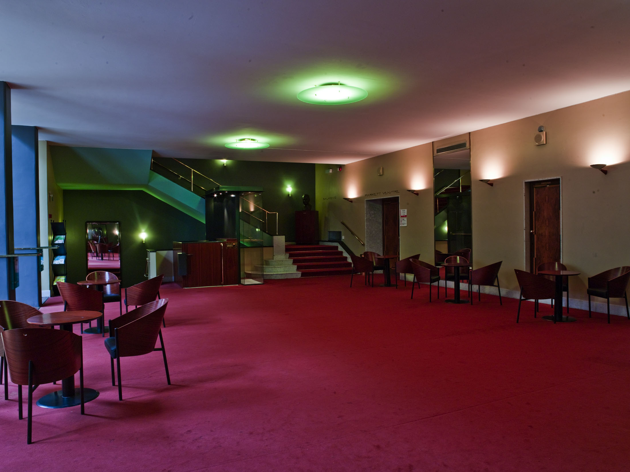 Fotografi av foajéen til balkong til Hovedscenen i Oslo Nye Teater.