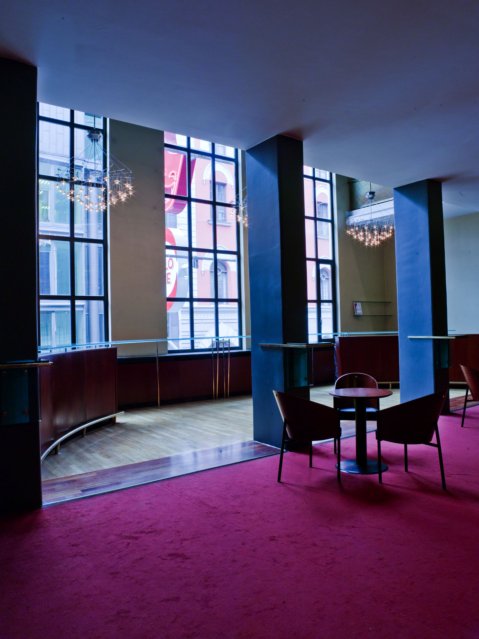 Fotografi av foajéen til balkong til Hovedscenen i Oslo Nye Teater.