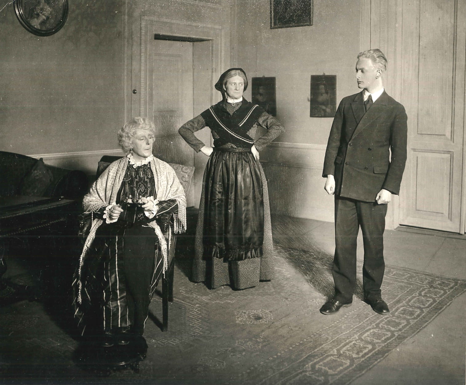 Fotografi fra Den Nationale Scenes produksjon Regnskabets dag (1930).
