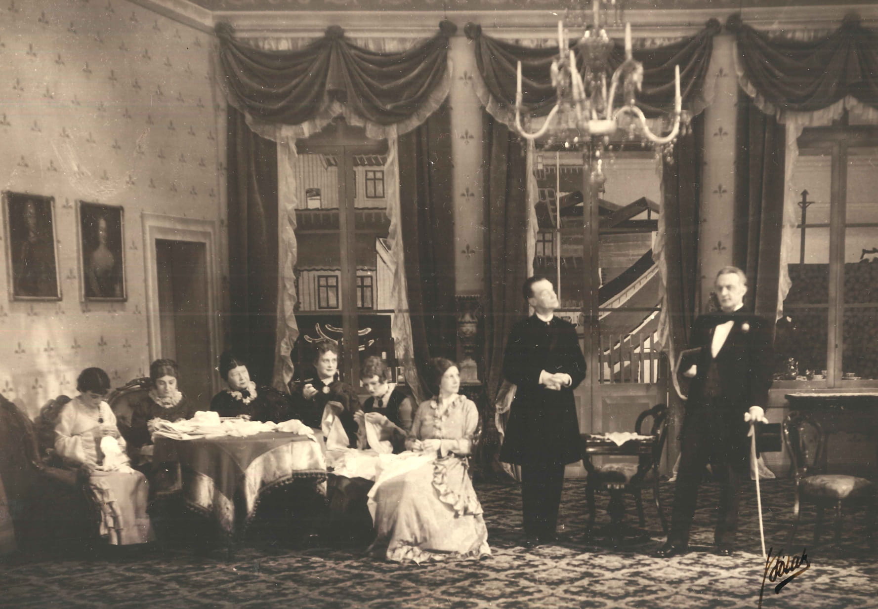 Fotografi fra Den Nationale Scenes produksjon Samfundets støtter (1934)
