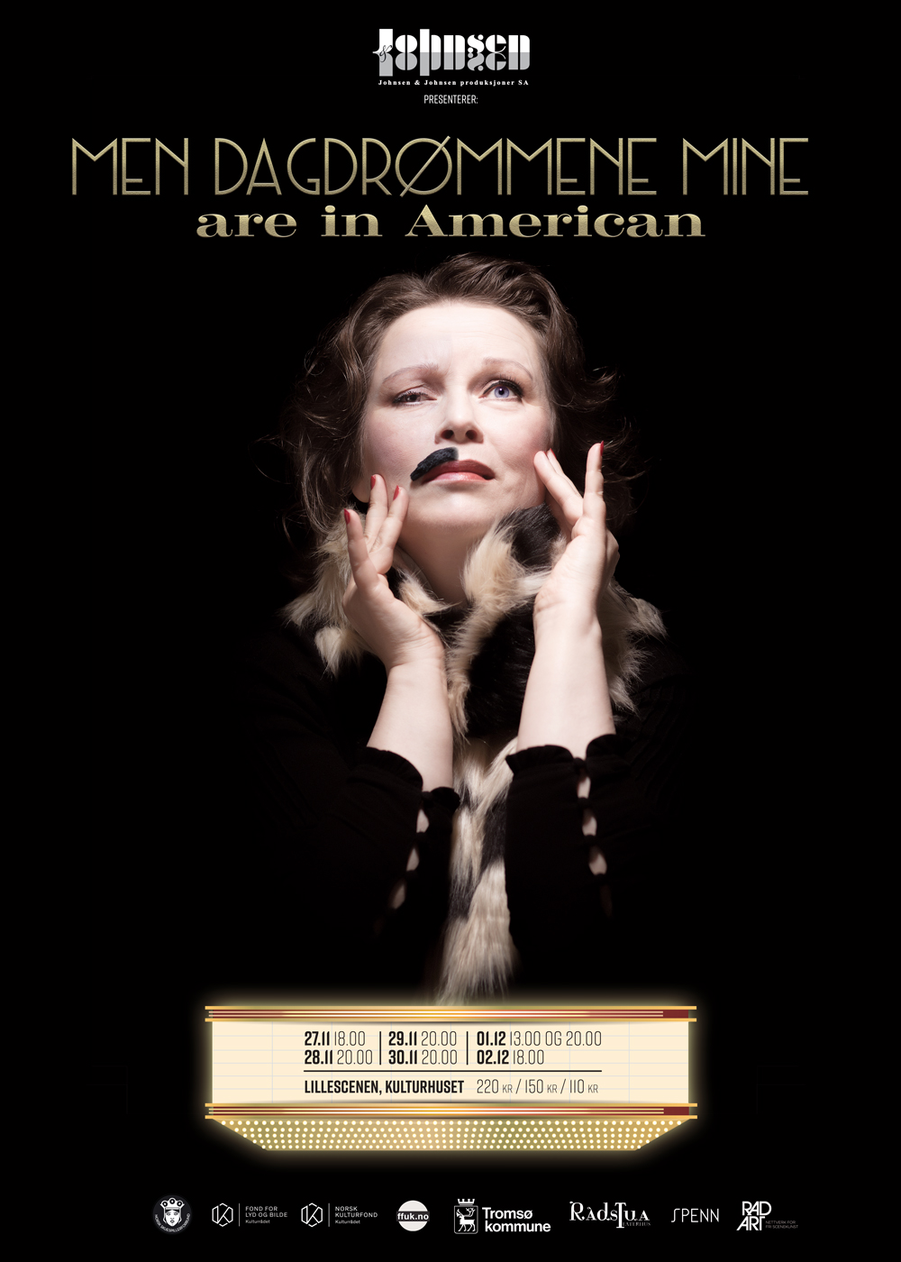Plakat fra Johnsen & Johnsen produksjoner SA forestilling Men dagdrømmene mine are in American (2017)