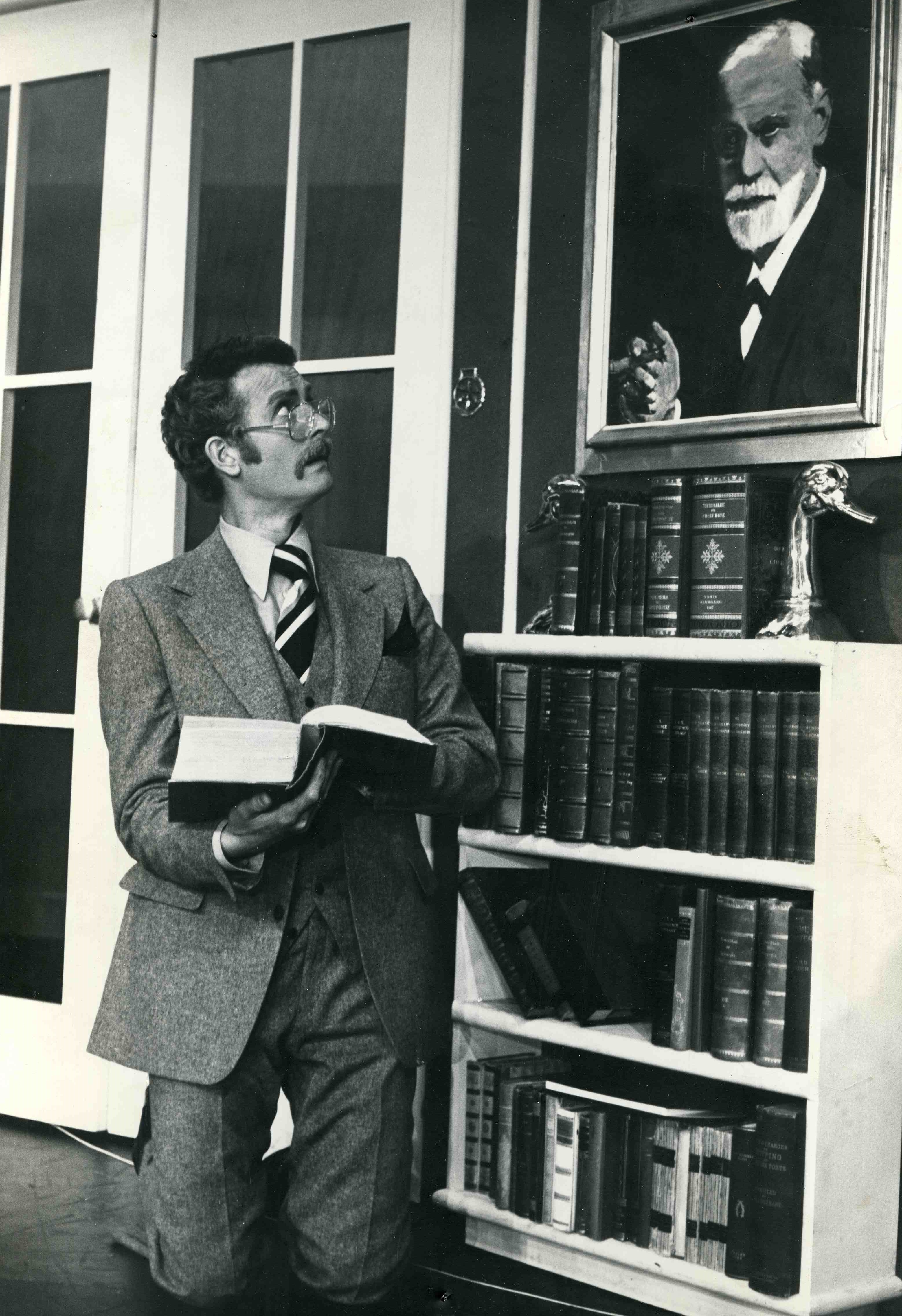Fotografi fra Oslo Nye Teaters produksjon Hva butleren så gjennom nøkkelhullet (1976)