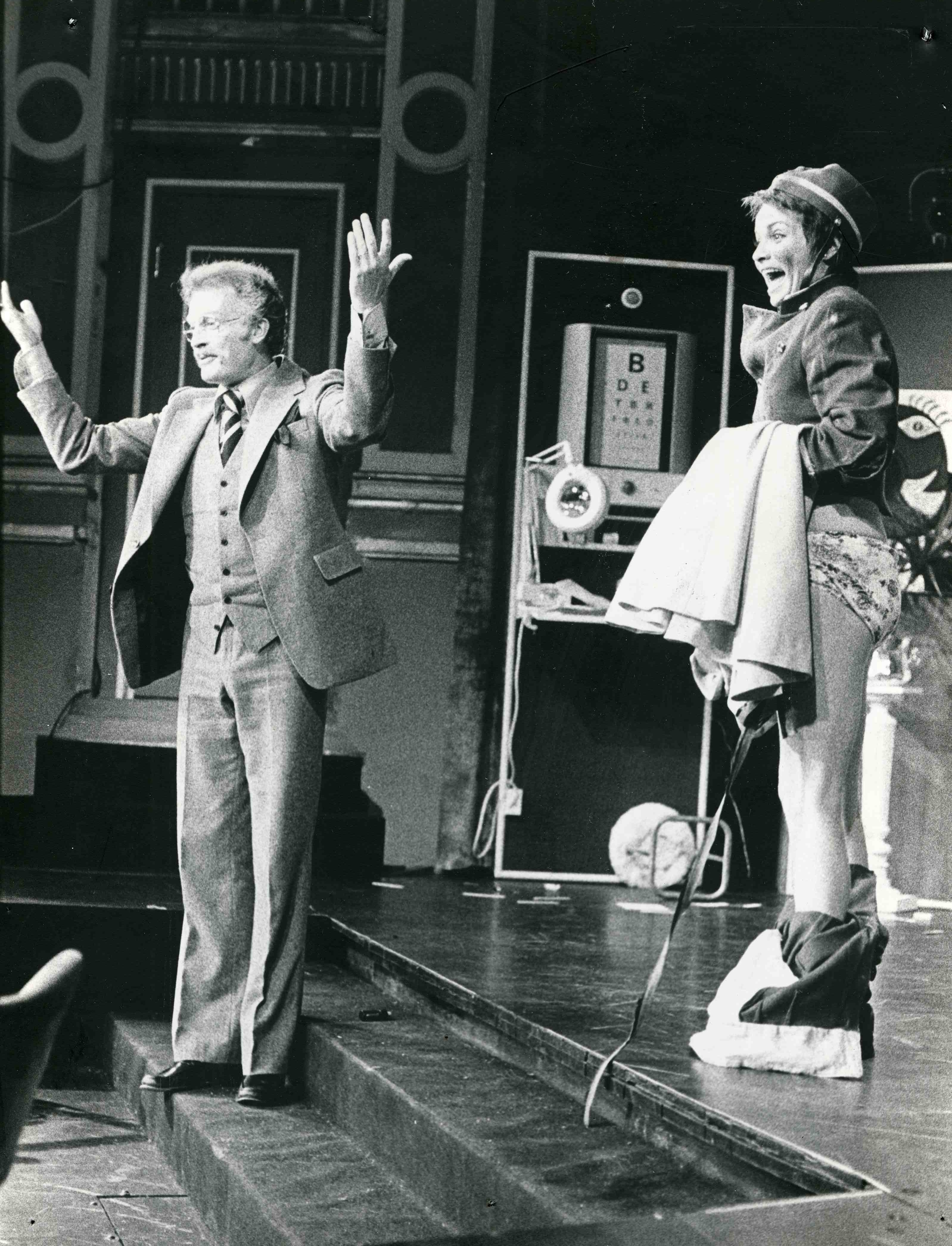 Fotografi fra Oslo Nye Teaters produksjon Hva butleren så gjennom nøkkelhullet (1976)
