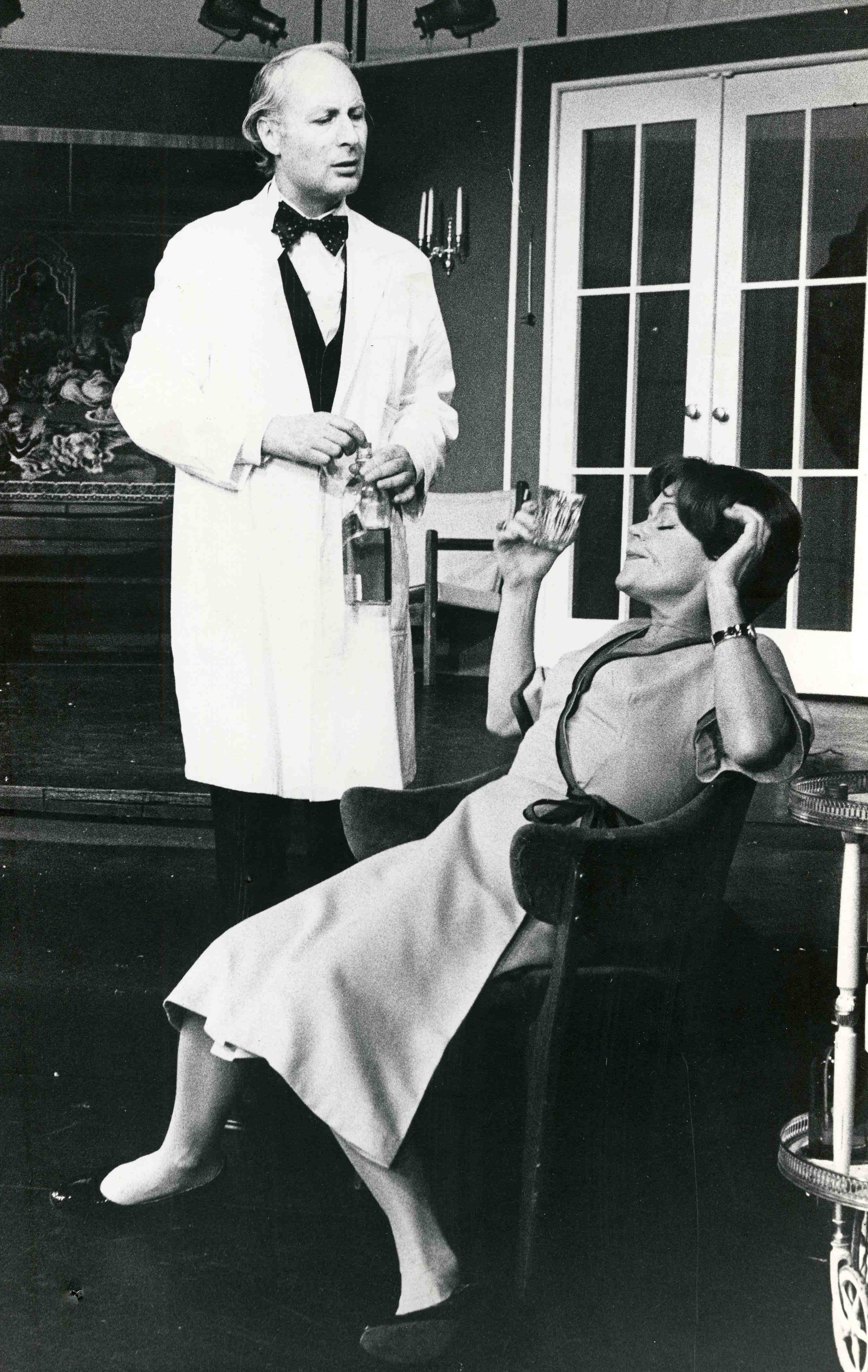 Fotografi fra Oslo Nye Teaters produksjon Hva butleren så gjennom nøkkelhullet (1976)