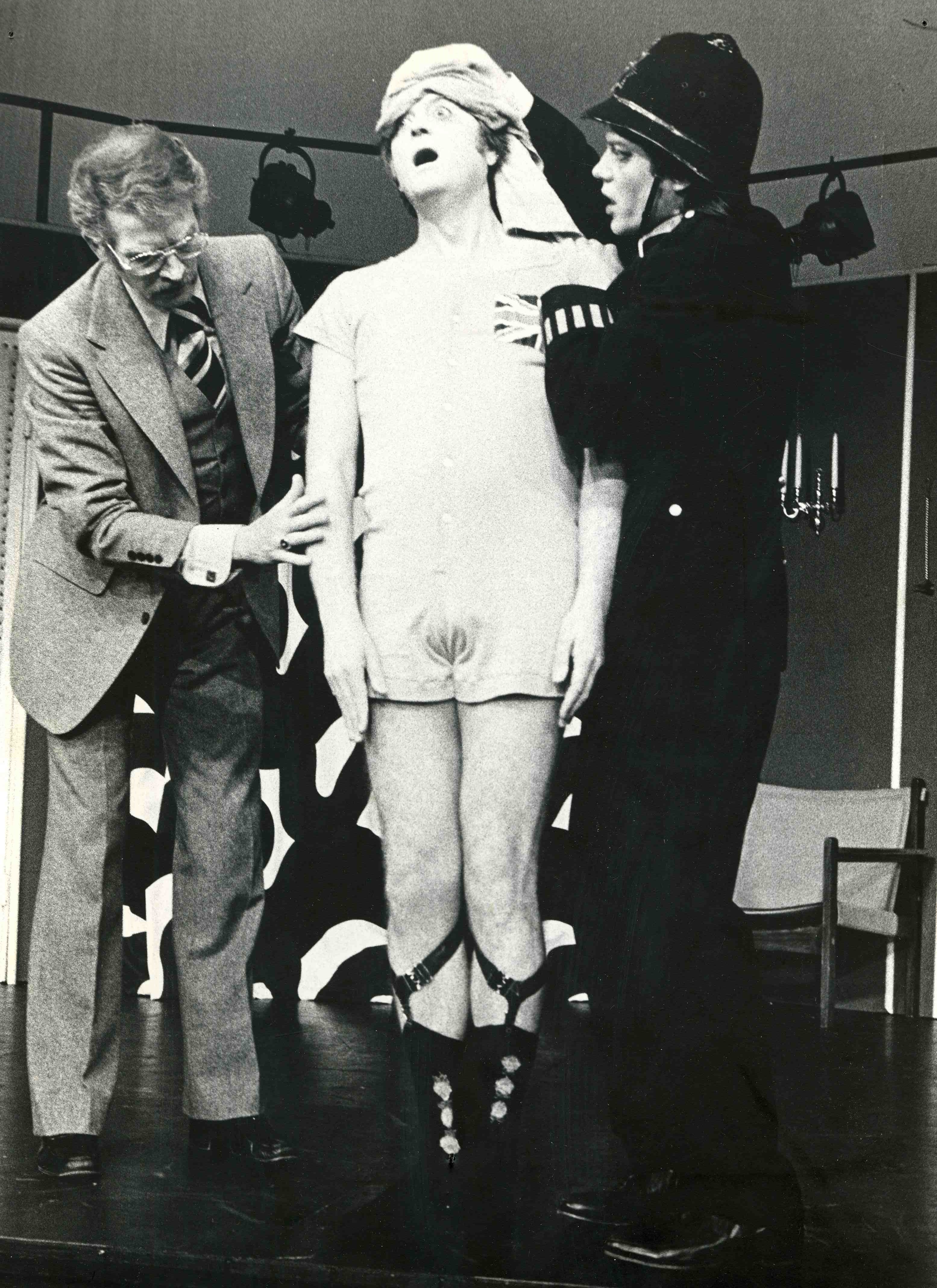 Fotografi fra Oslo Nye Teaters produksjon Hva butleren så gjennom nøkkelhullet (1976)