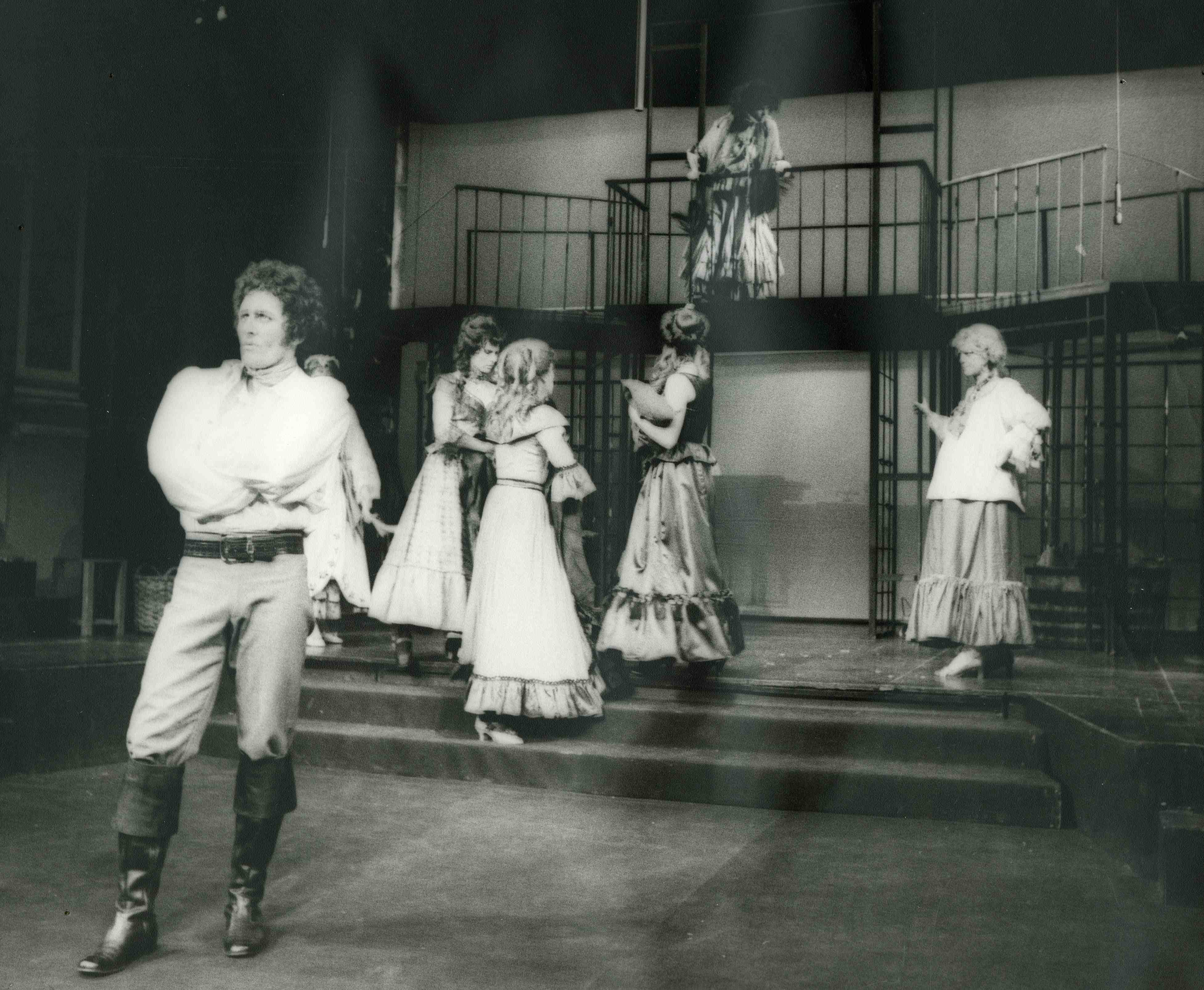 Fotografi fra Oslo Nye Teaters produksjon Barocke banditter (Tiggeroperaen) (1977).
