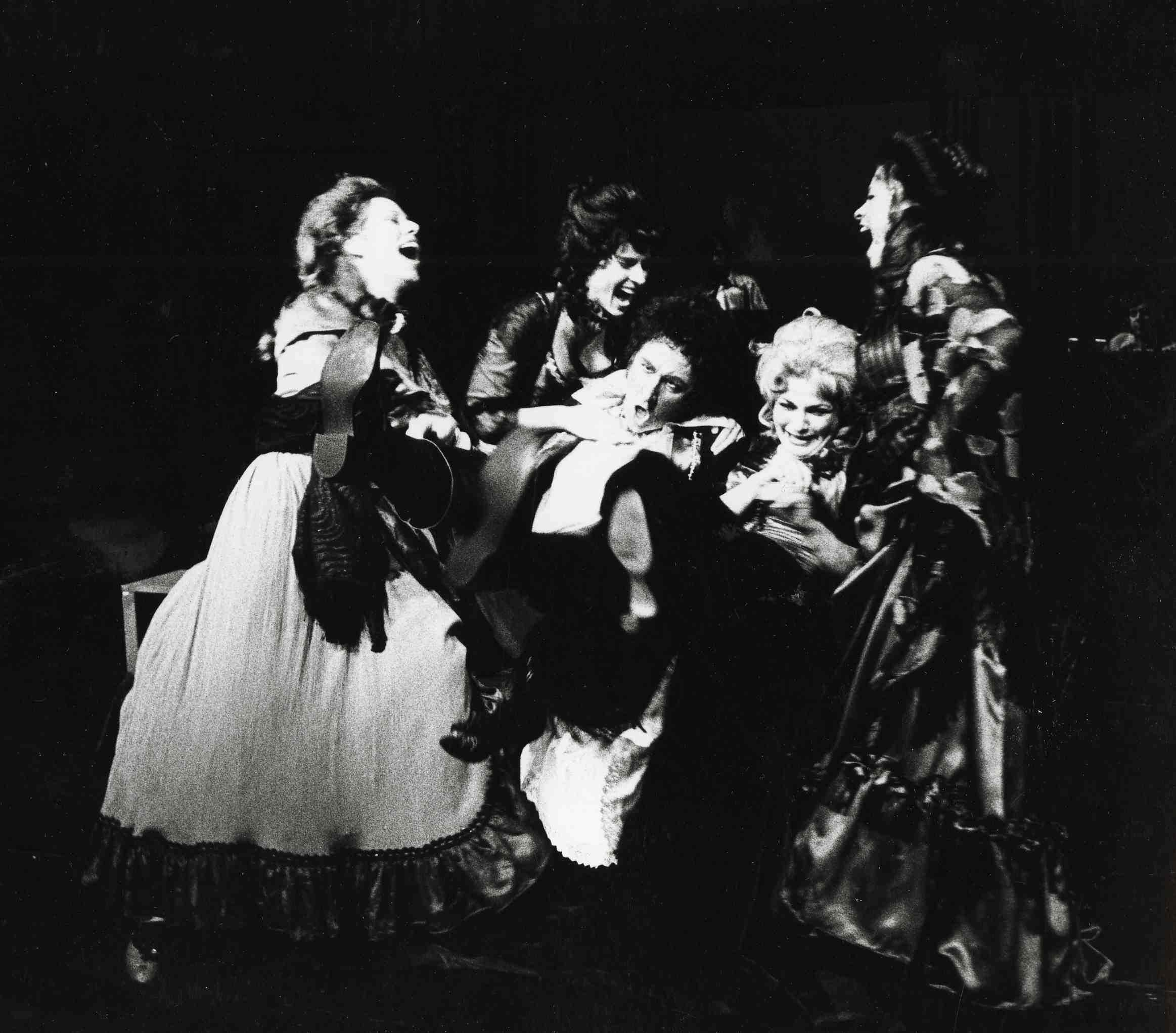 Fotografi fra Oslo Nye Teaters produksjon Barocke banditter (Tiggeroperaen) (1977).