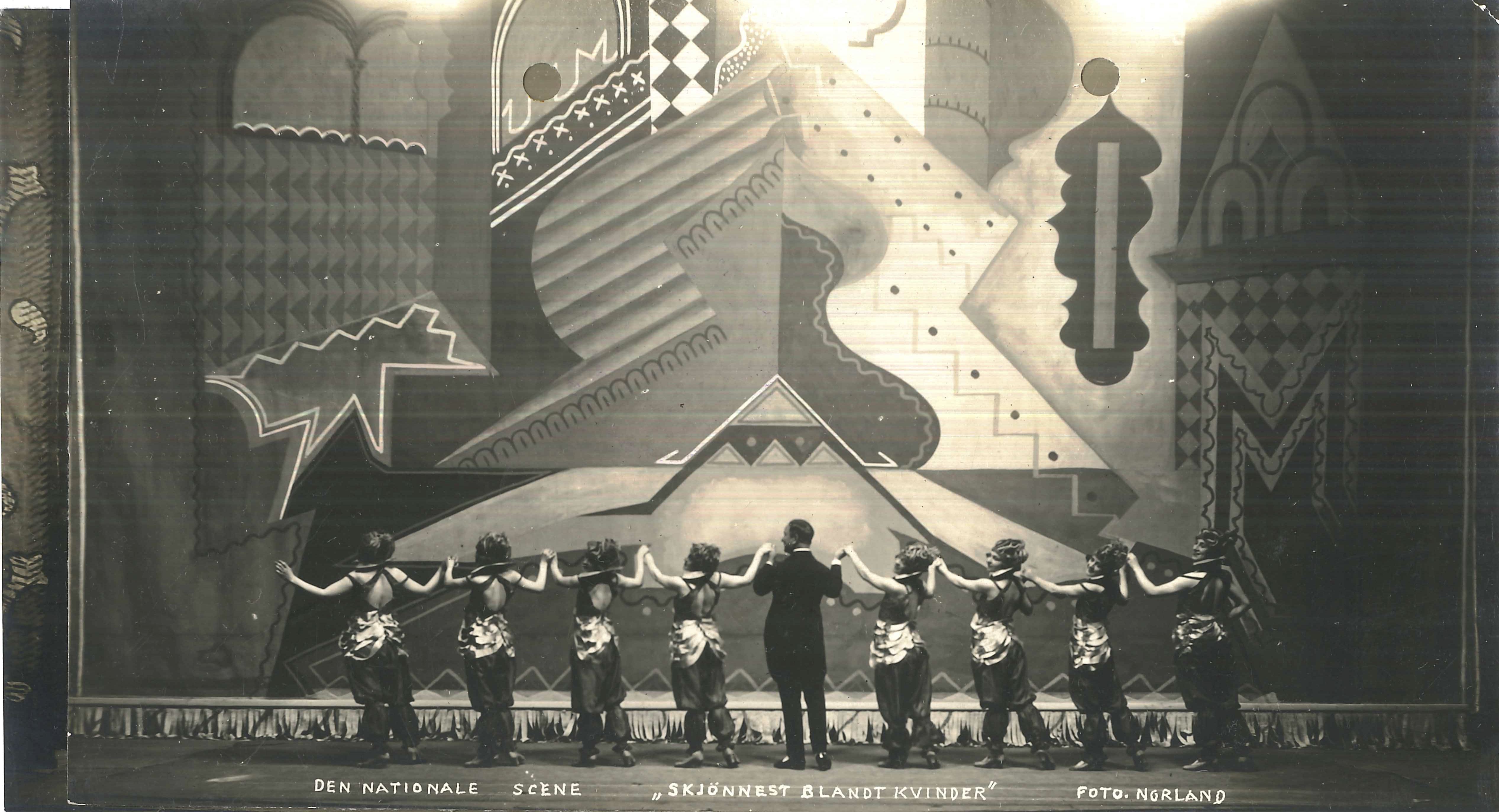 Fotografi fra Den Nationale Scenes produksjon Skjønnest blandt kvinder (1926).