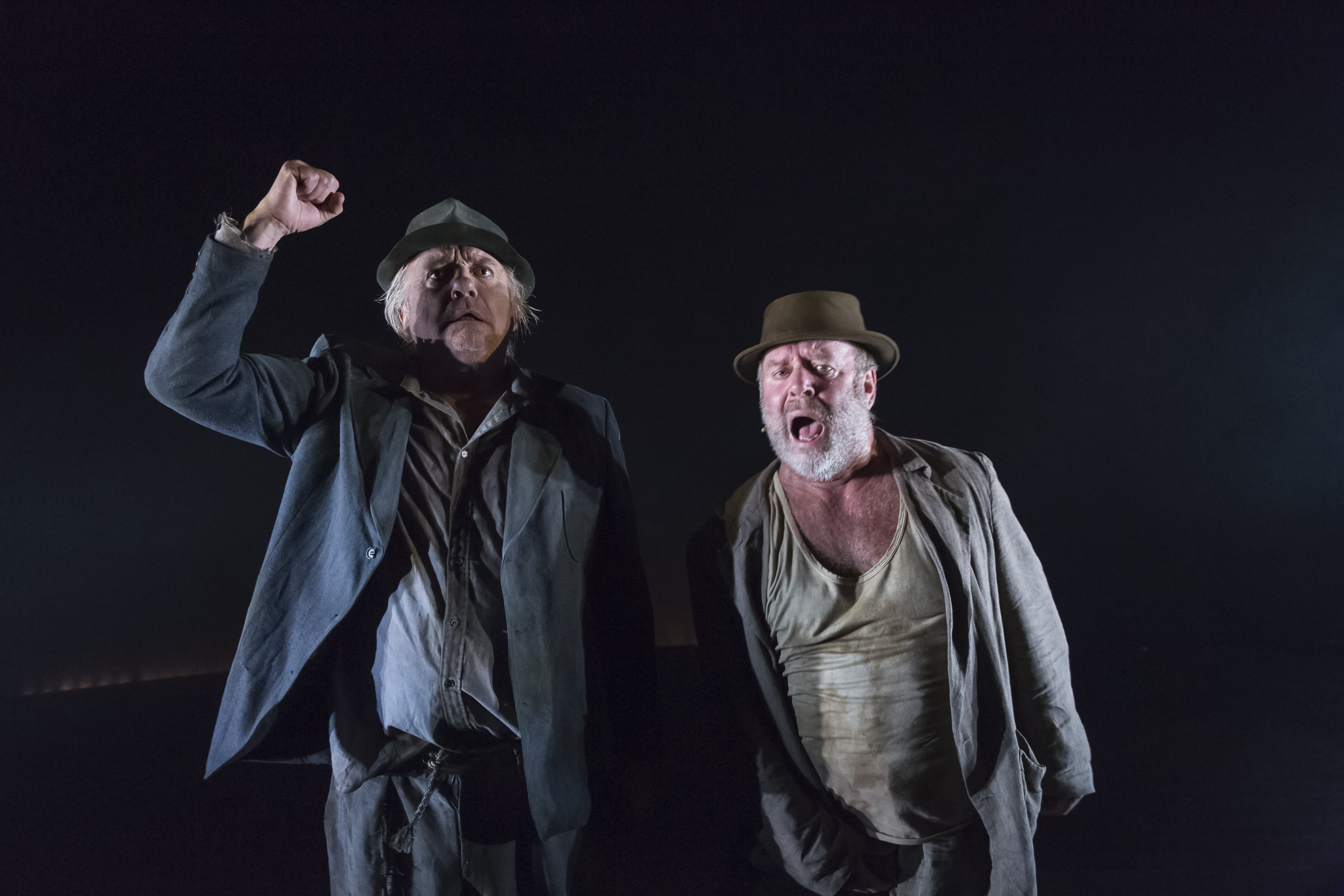 Fotografi fra Riksteatret og Det Norske Teatrets produksjon Mens vi ventar på Godot (2013).
