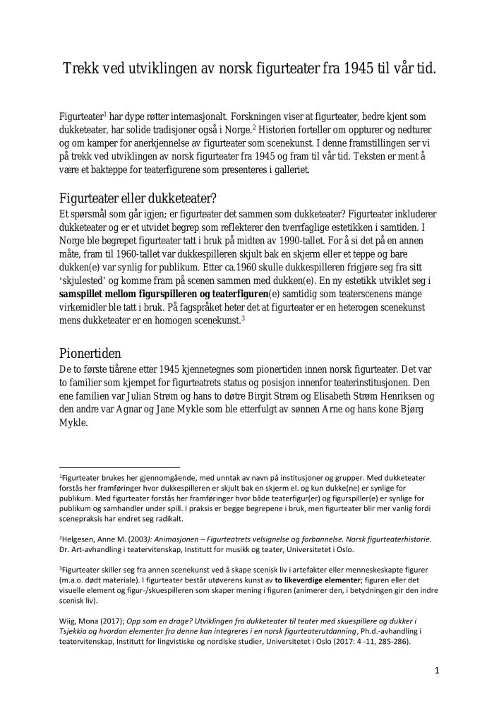 Historisk artikkel om figurteater i Norge av Mona Wiig (2020)