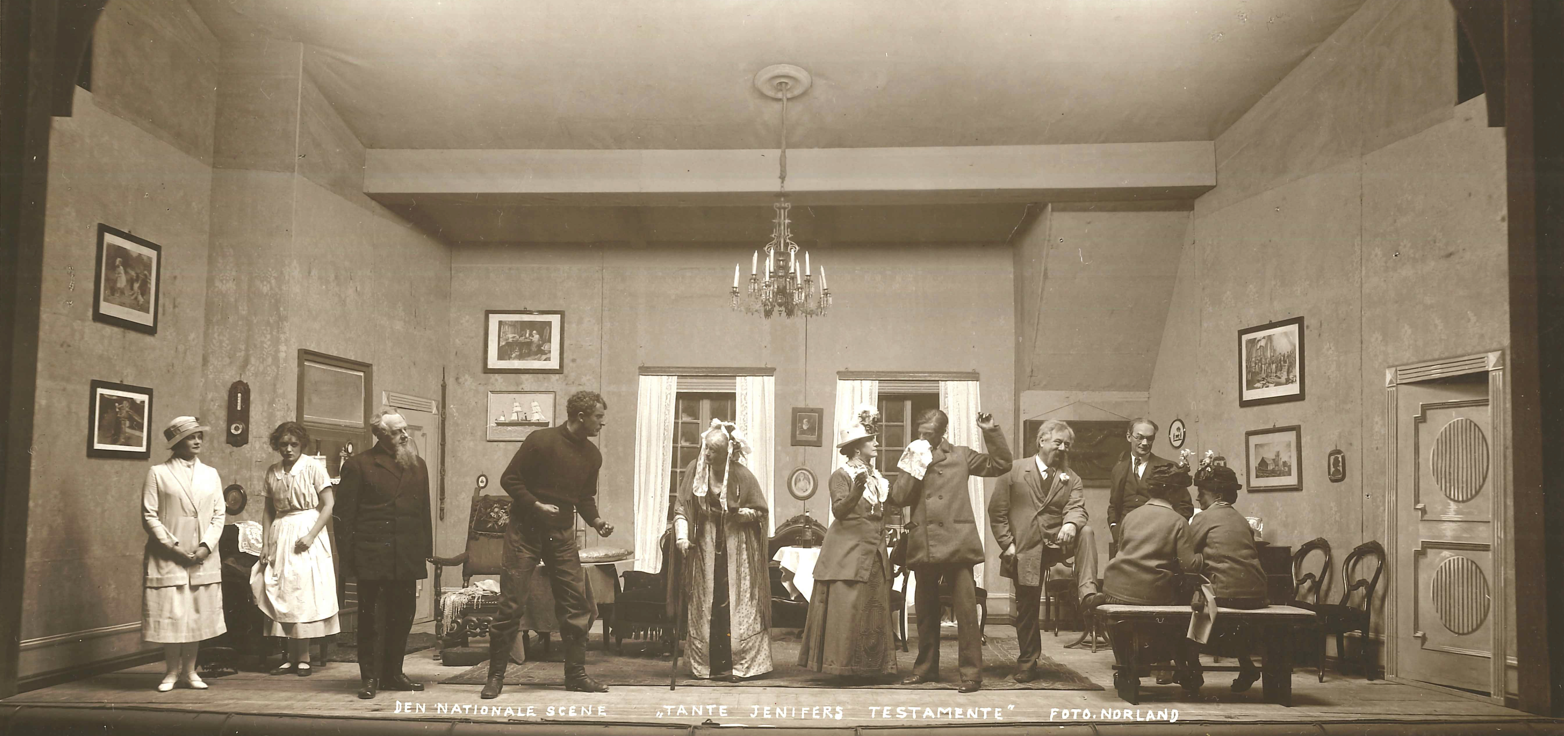 Fotografi fra Den Nationale Scenes produksjon Tante Jenifers testamente (1928).
