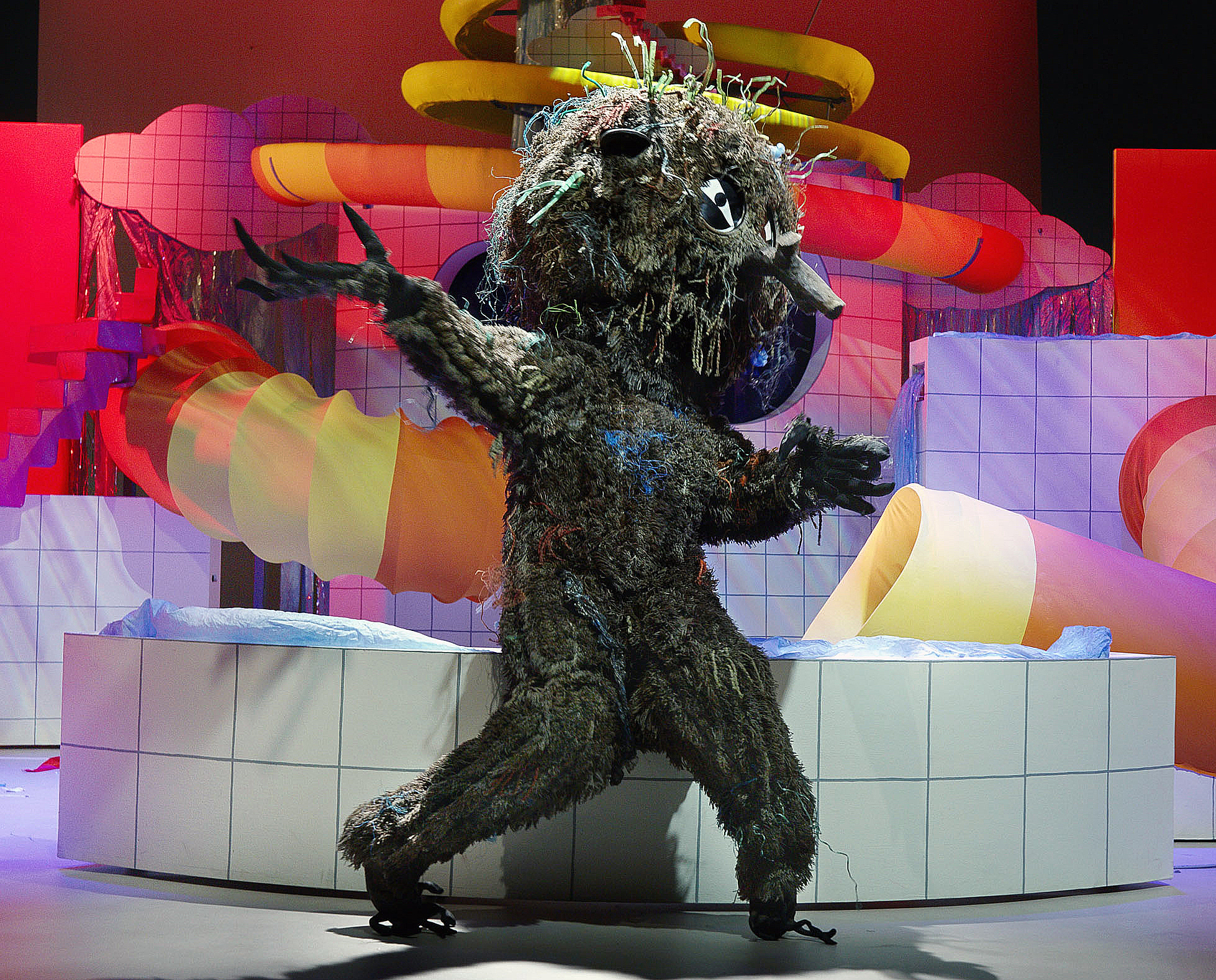 Fotografi fra Oslo Nye Teaters samproduksjon med Riksteatret Bukkene Bruse på Badeland (2015).