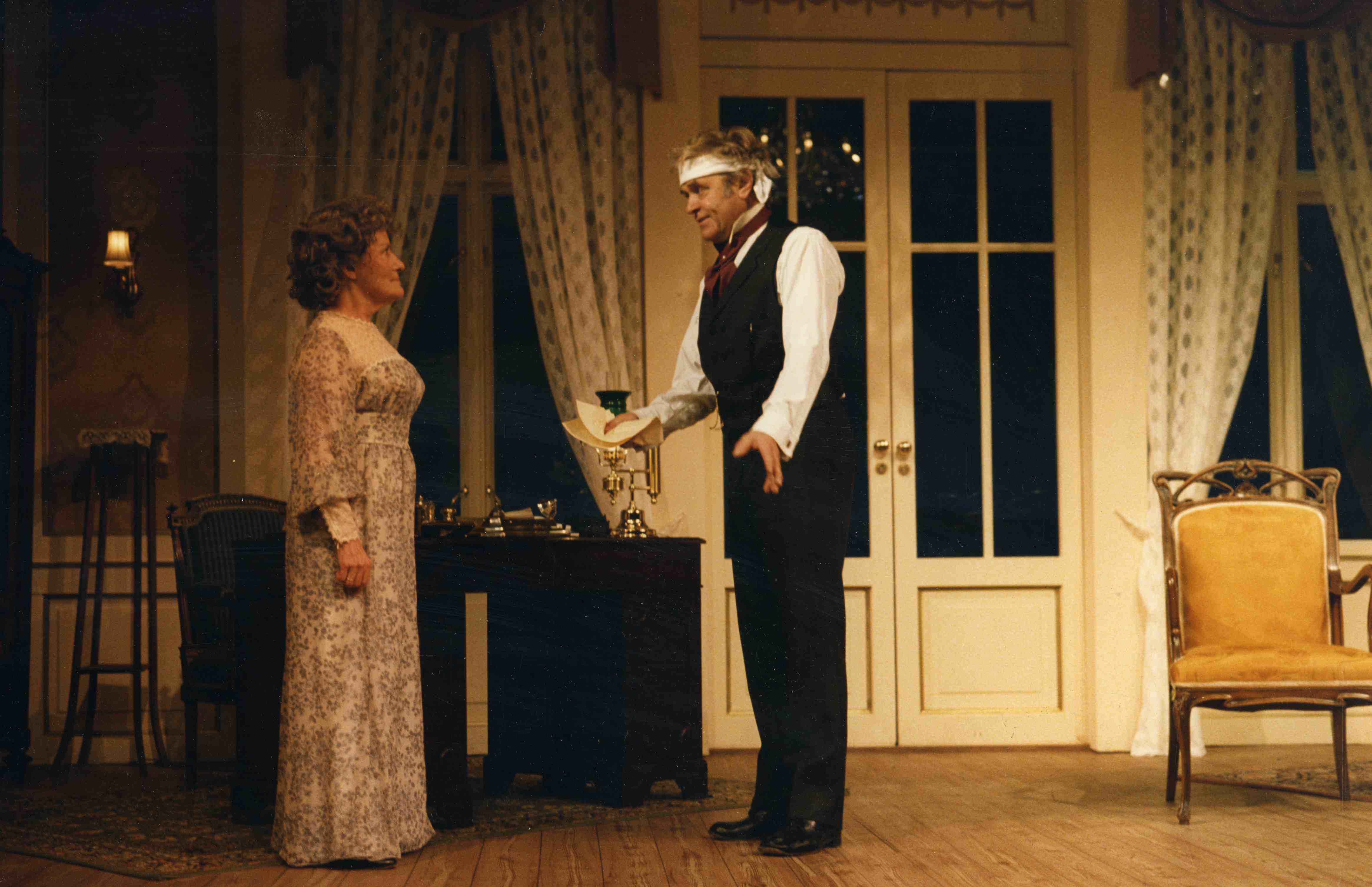 Fotografi fra Oslo Nye Teaters produksjon Det lykkelige valg(1985).
