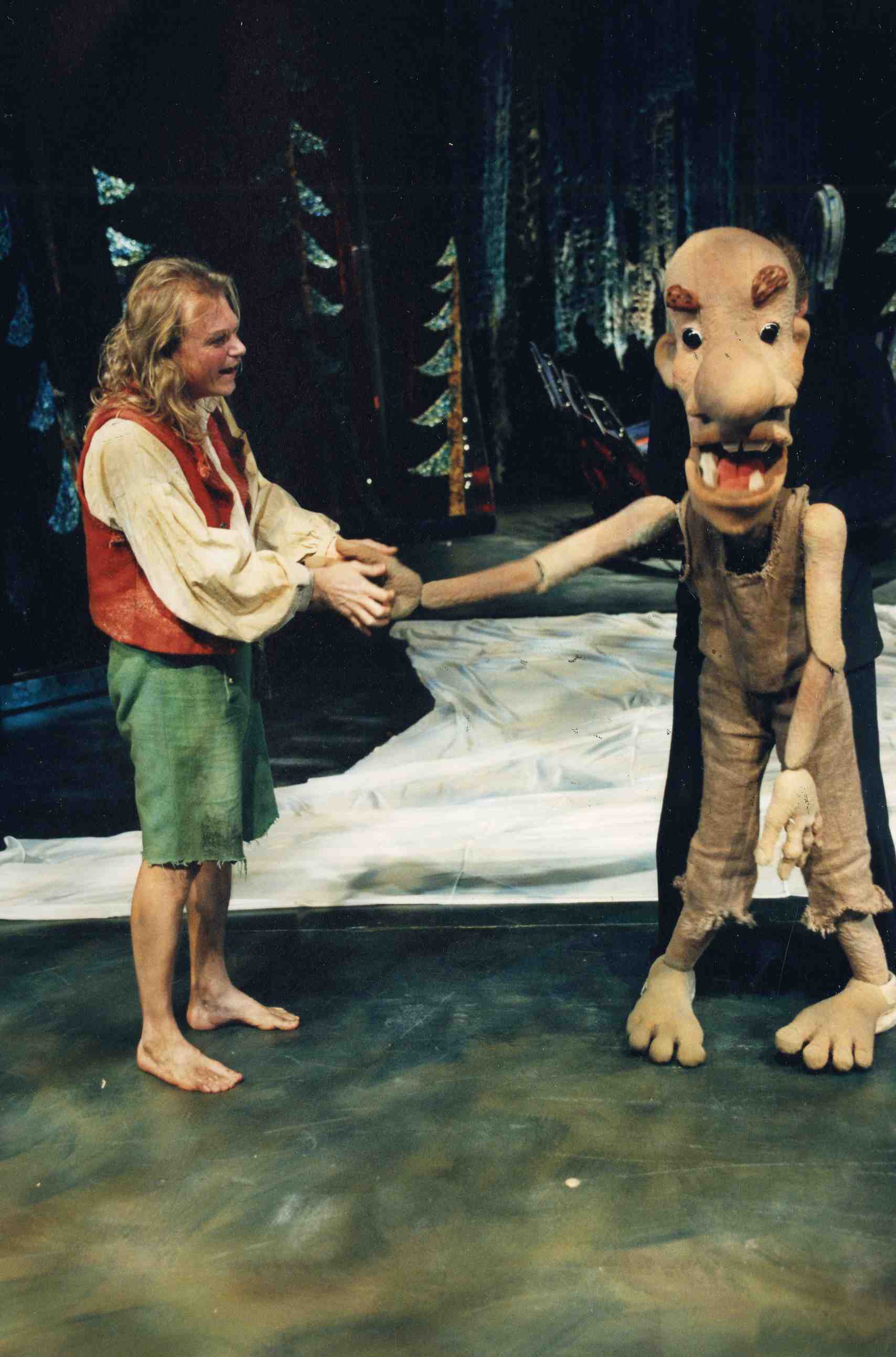 Fotografi fra Oslo Nye Teaters produksjon Askeladden og de gode hjelperne(1996).