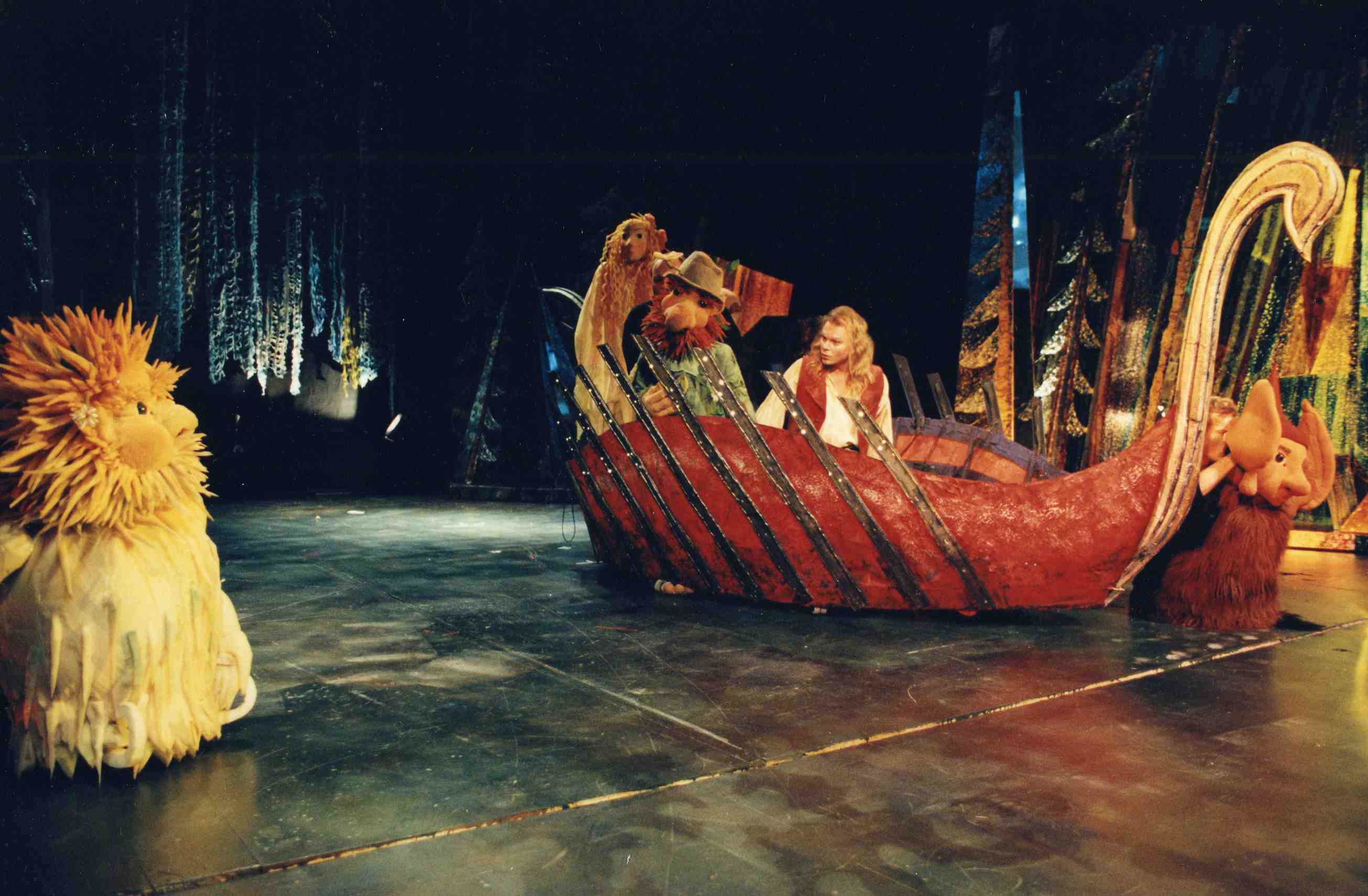 Fotografi fra Oslo Nye Teaters produksjon Askeladden og de gode hjelperne(1996).