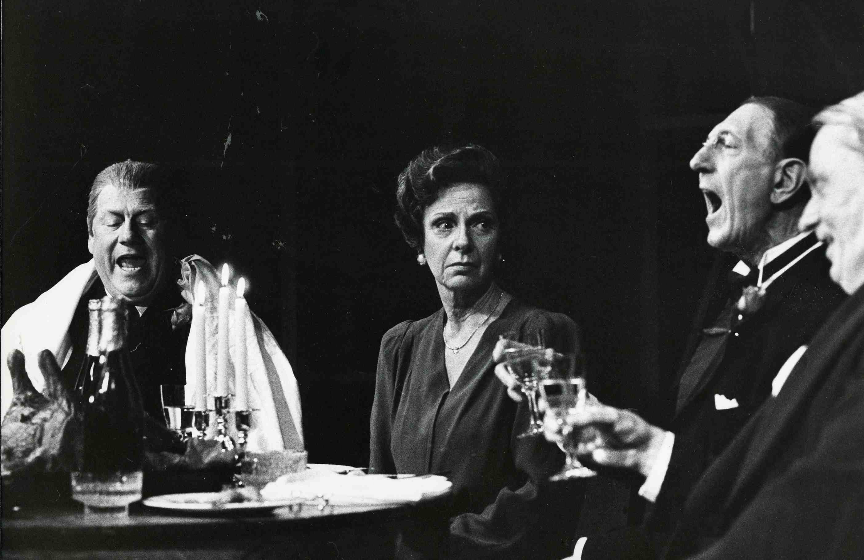 Fotografi fra Oslo Nye Teaters produksjon Biedermann og brannstifterne (1978).