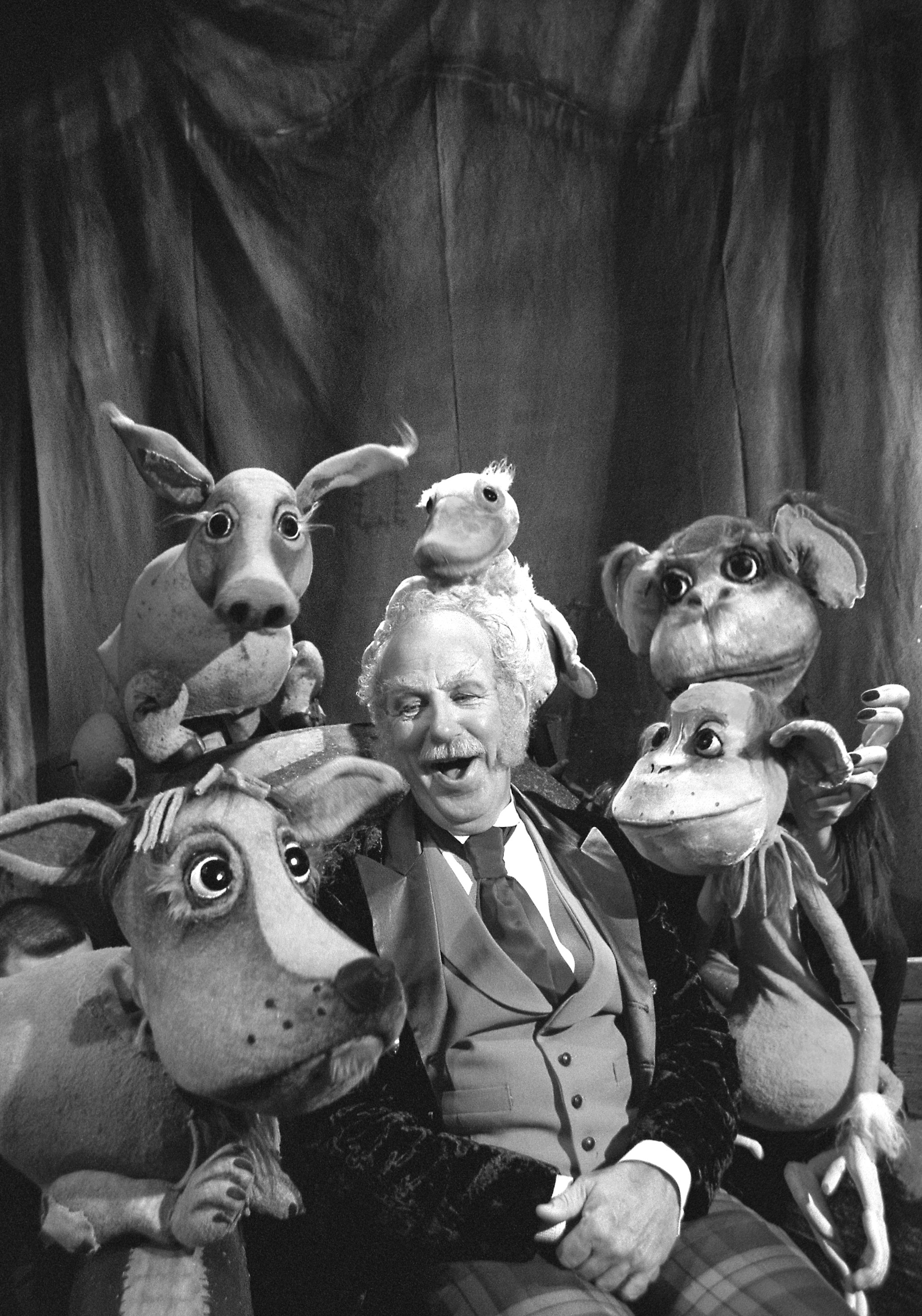 Fotografi fra Riksteatrets produksjon Doktor Dyregod og den magiske apeskatten (2002)