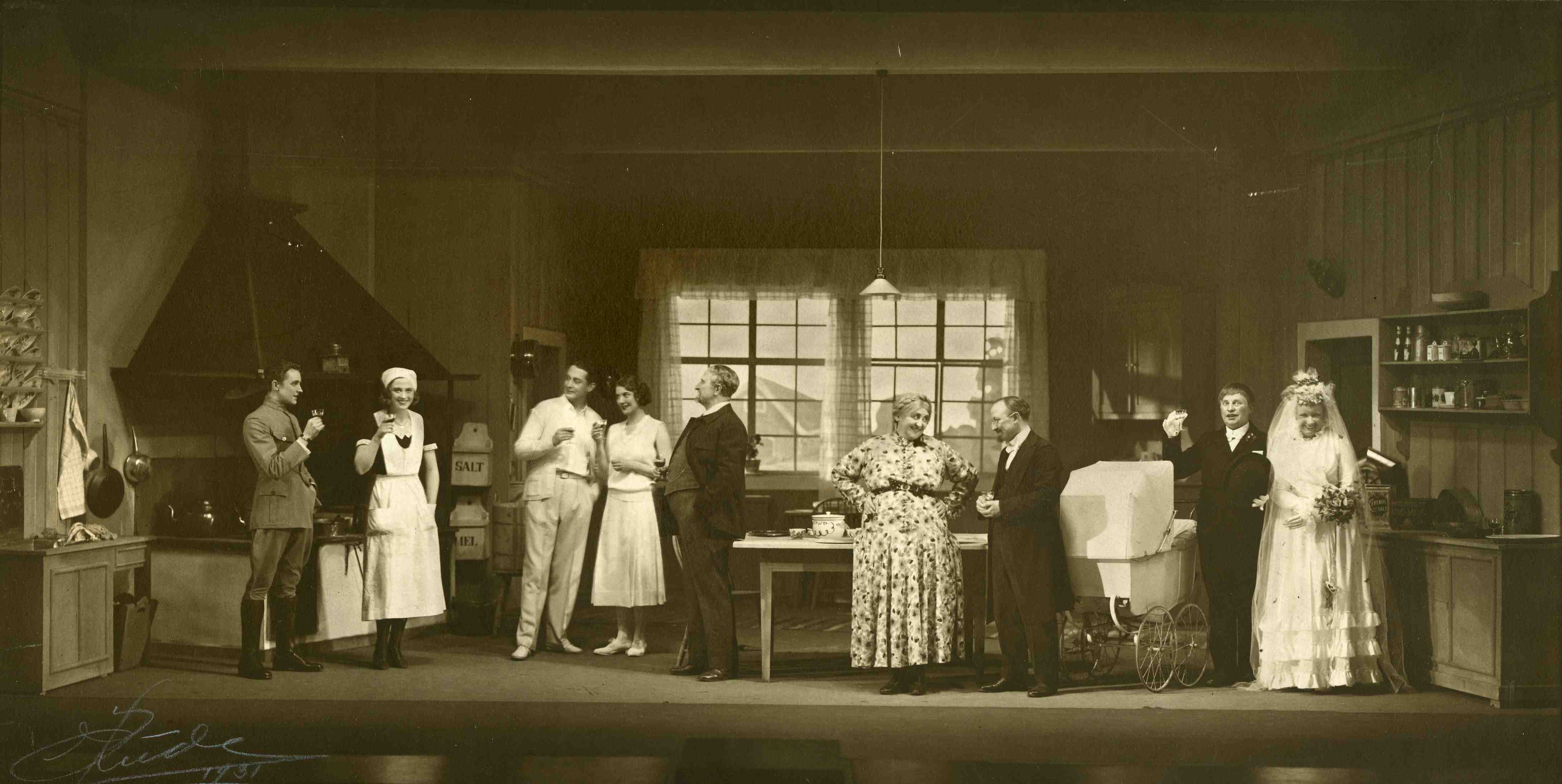 Fotografi fra Det Nye Teaters produksjon Vi som går kjøkkenveien (1932)