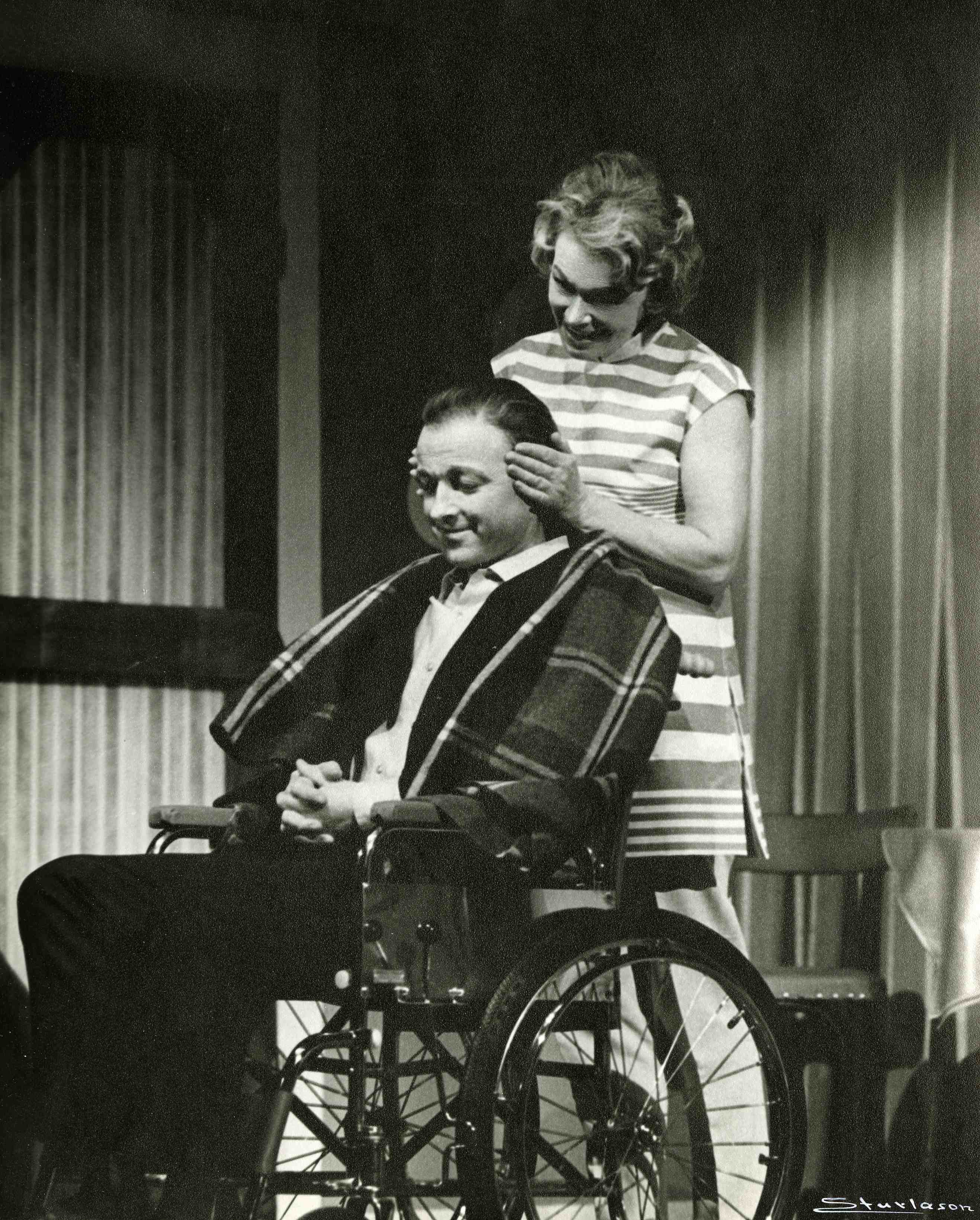 Fotografi fra Oslo Nye Teaters produksjon Ingen blomster, takk (1964).