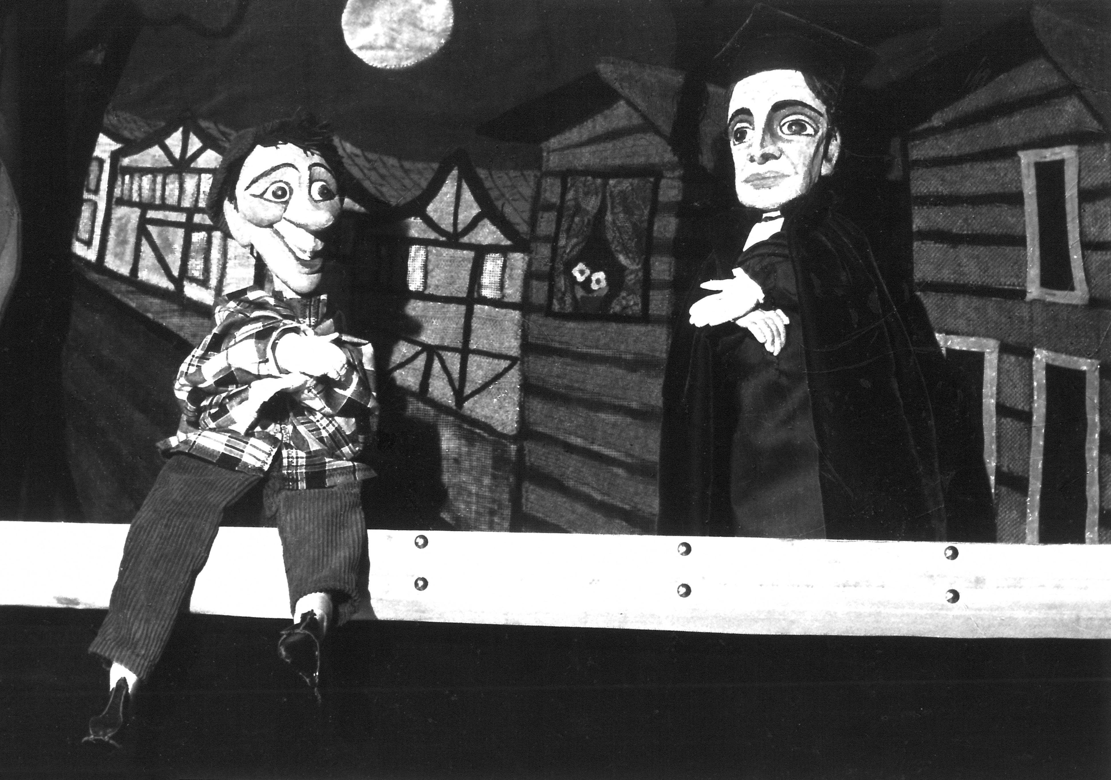 Fotografi fra Norsk Dukketeaters produksjon Doktor Faust og Djevelen (1954).