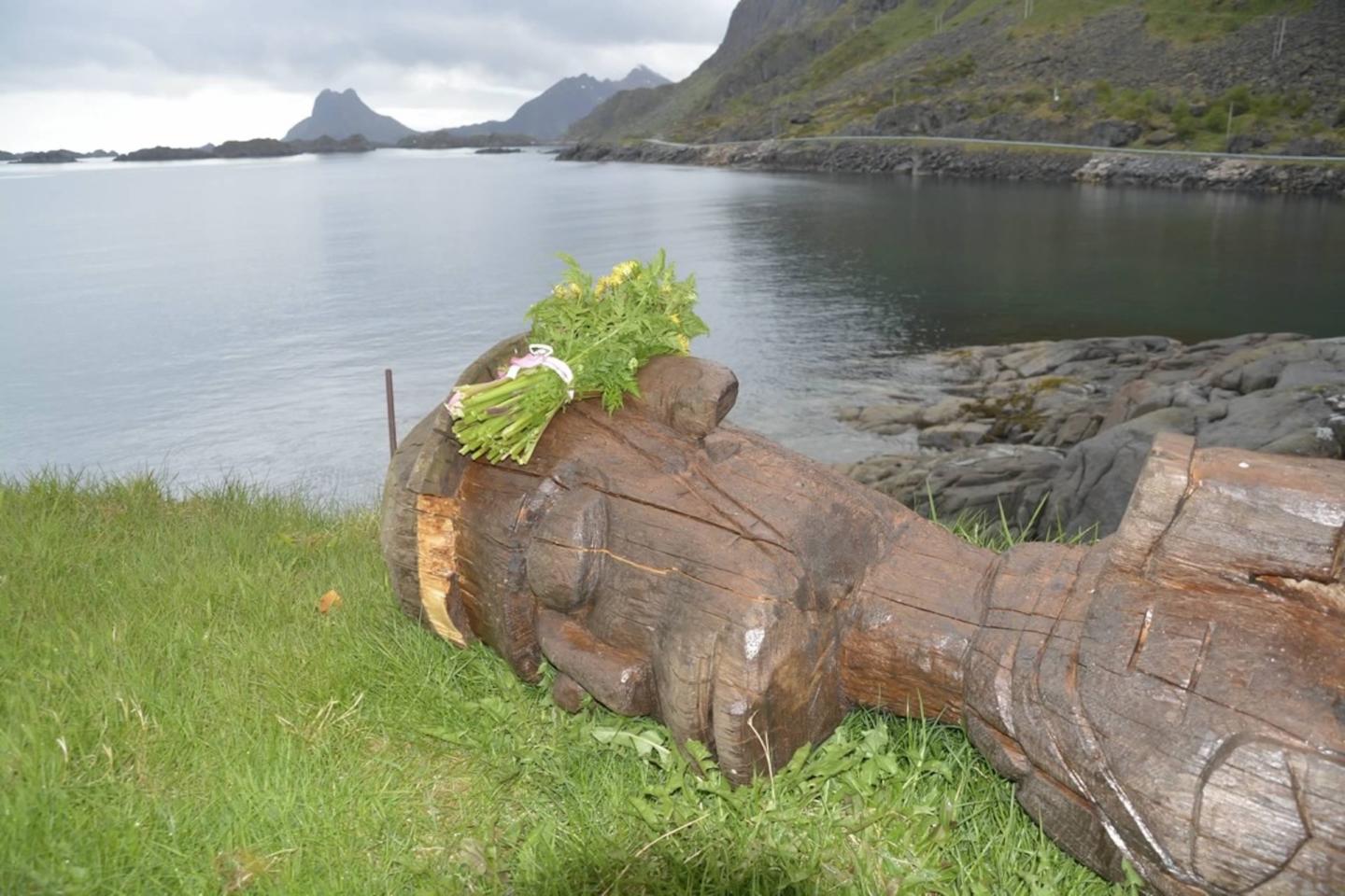 Fotografi av Baktruppens skulptur Turisten etter sin død.