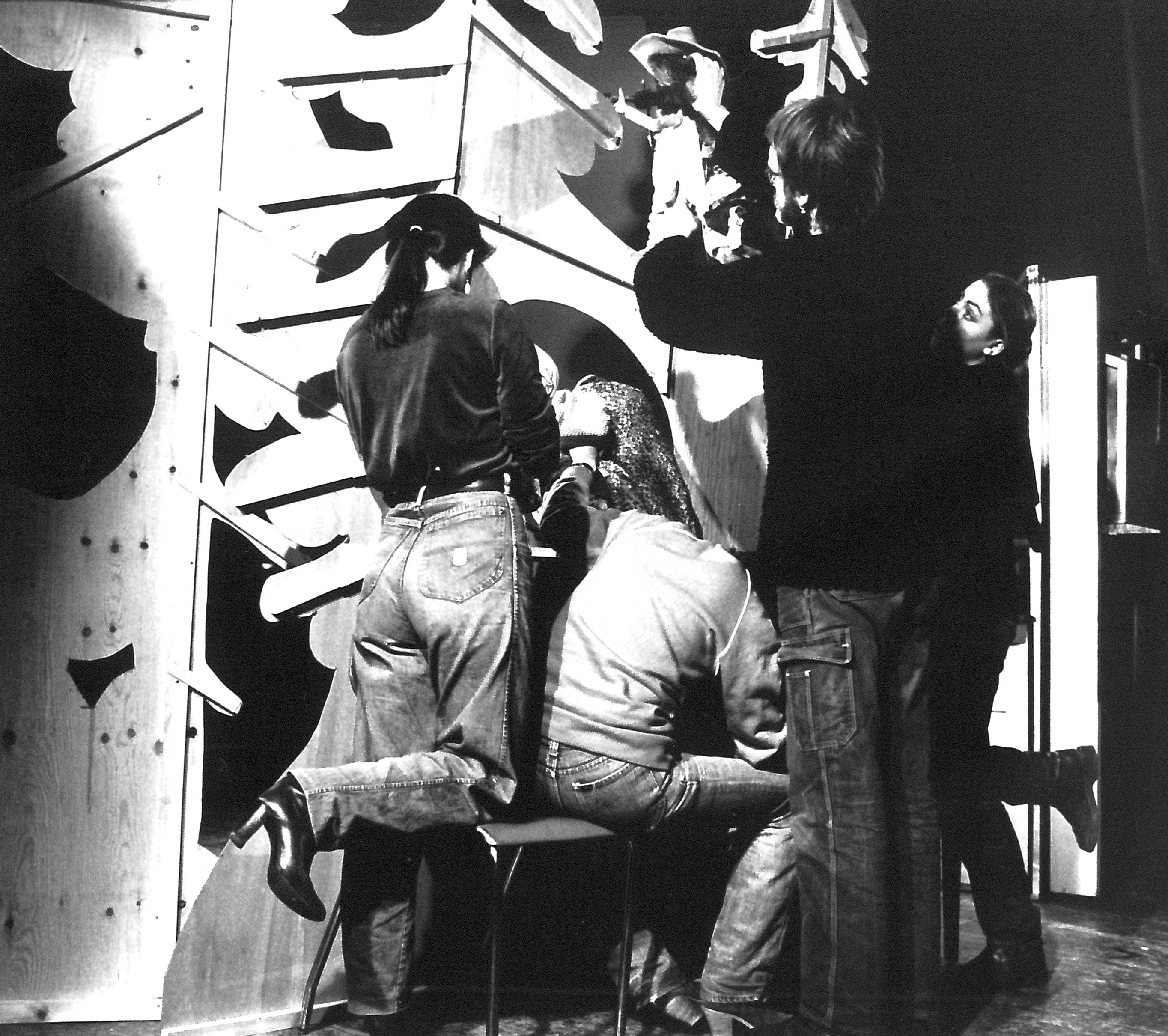 Fotografi fra Riksteatrets produksjon Teskjekjerringa på teater (1981).
