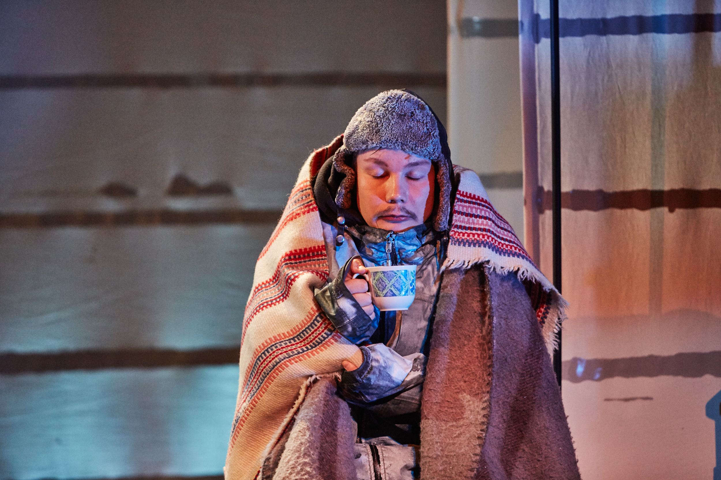 Photo from The National Sami Theatre Beaivváš's production Gurut guvlui Heahtás / Vasemmalle Hetasta /To the left in Hetta (2014)