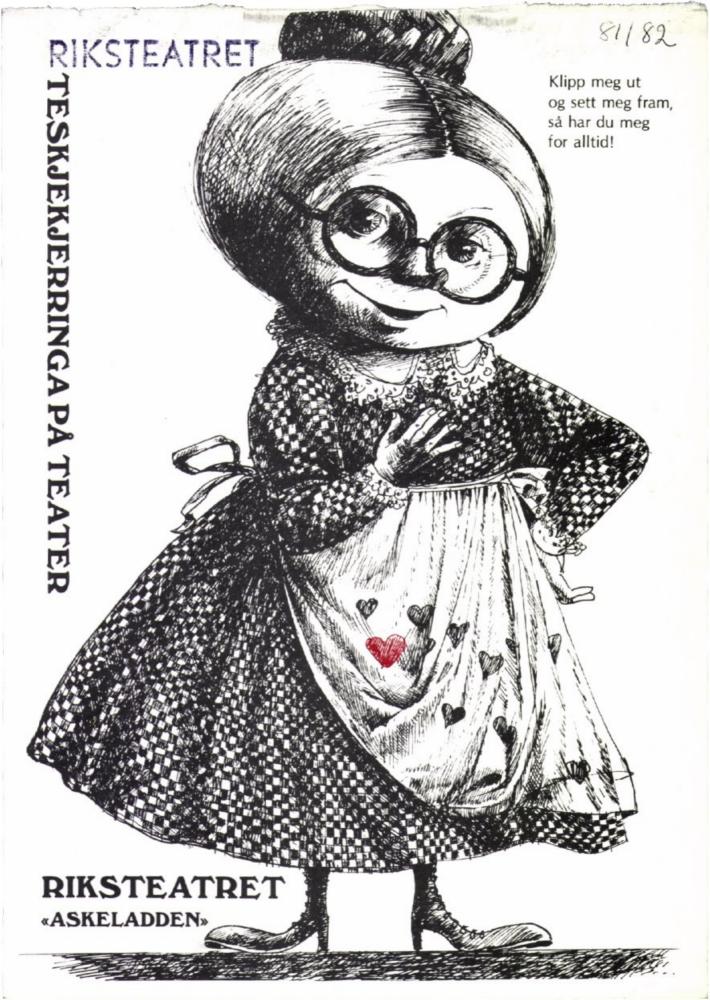 Program fra Riksteatrets produksjon Teskjekjerringa på teater (1981).