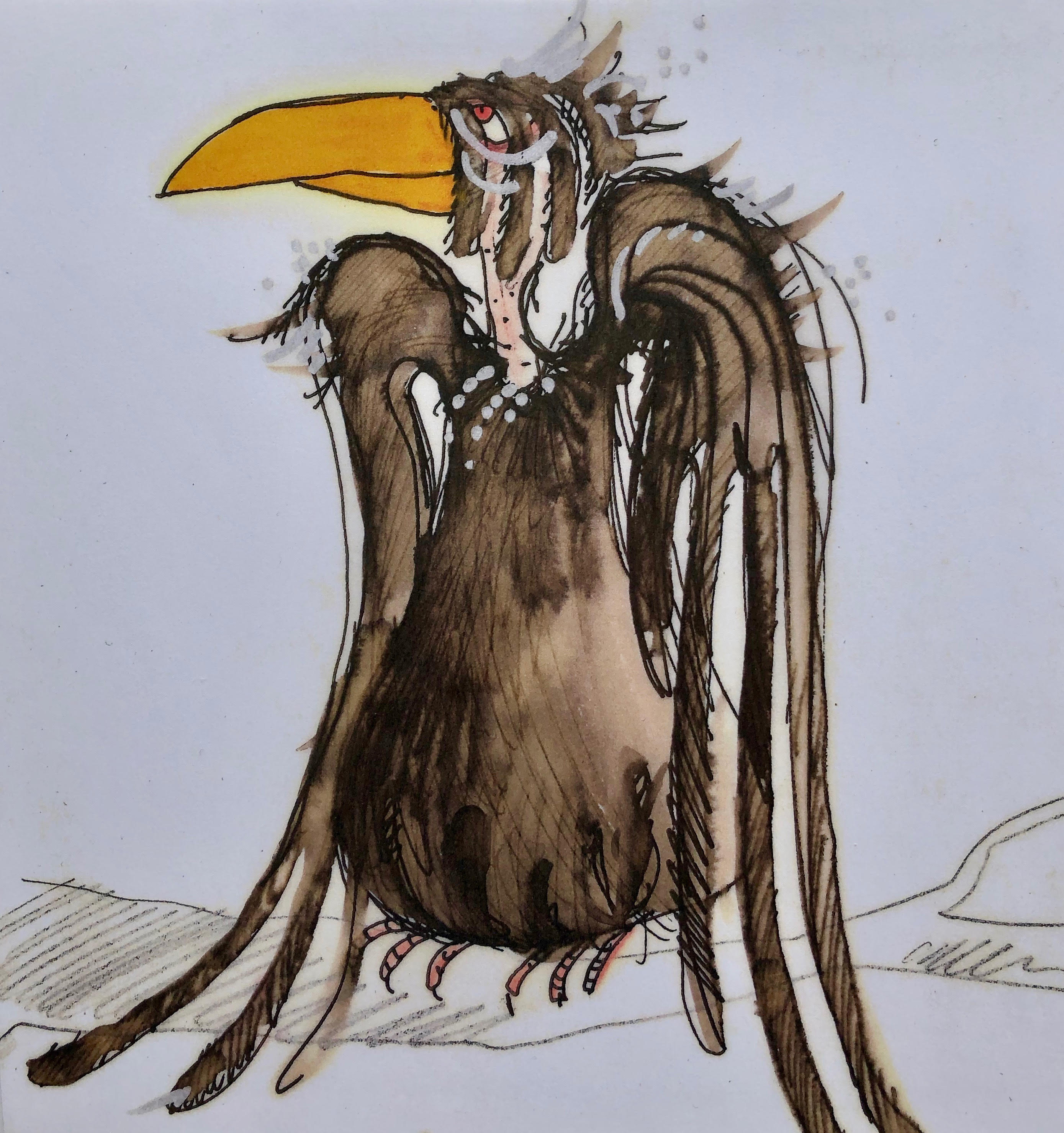 Skisse fra Petrusjka Teaters produksjon Ravno - en fuglehistorie (1988).