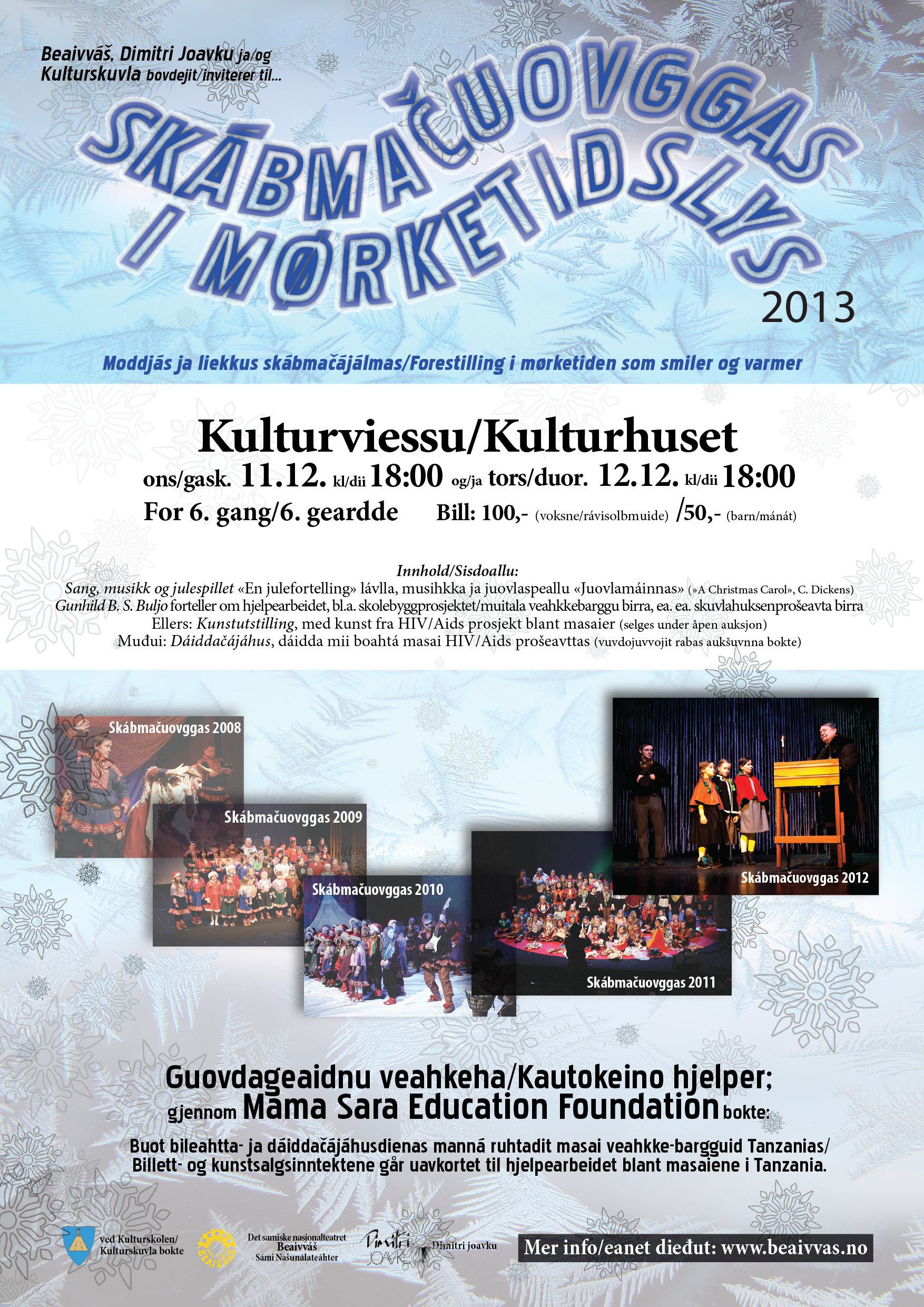 Poster for Beaivváš Sámi Našunálateáhters produksjon In dark time light (2008). The poster is from performance in 2013