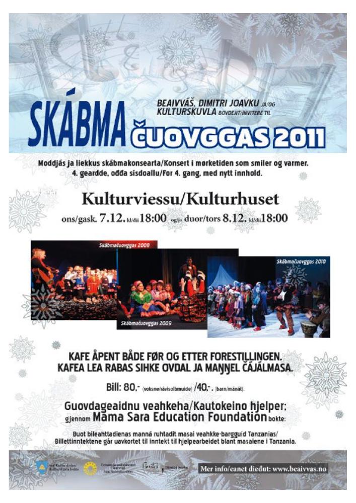 Flyer from The National Sami Theatre Beaivvášs production In dark time light (2008). Flyer is from 2011.