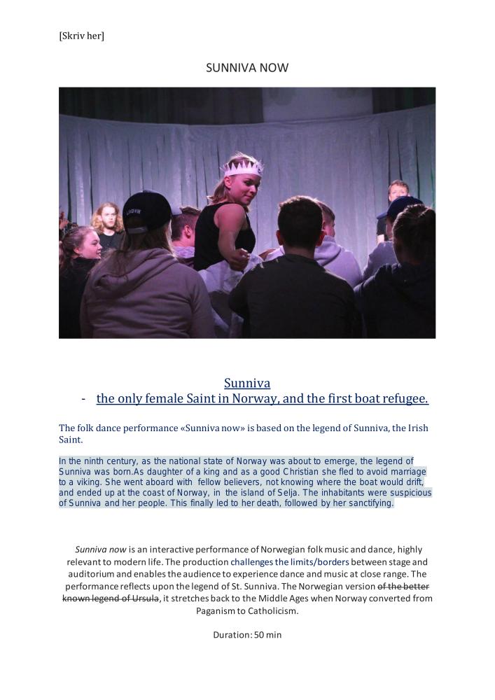 Informasjonsskriv om produksjonen Sunniva no (2017).