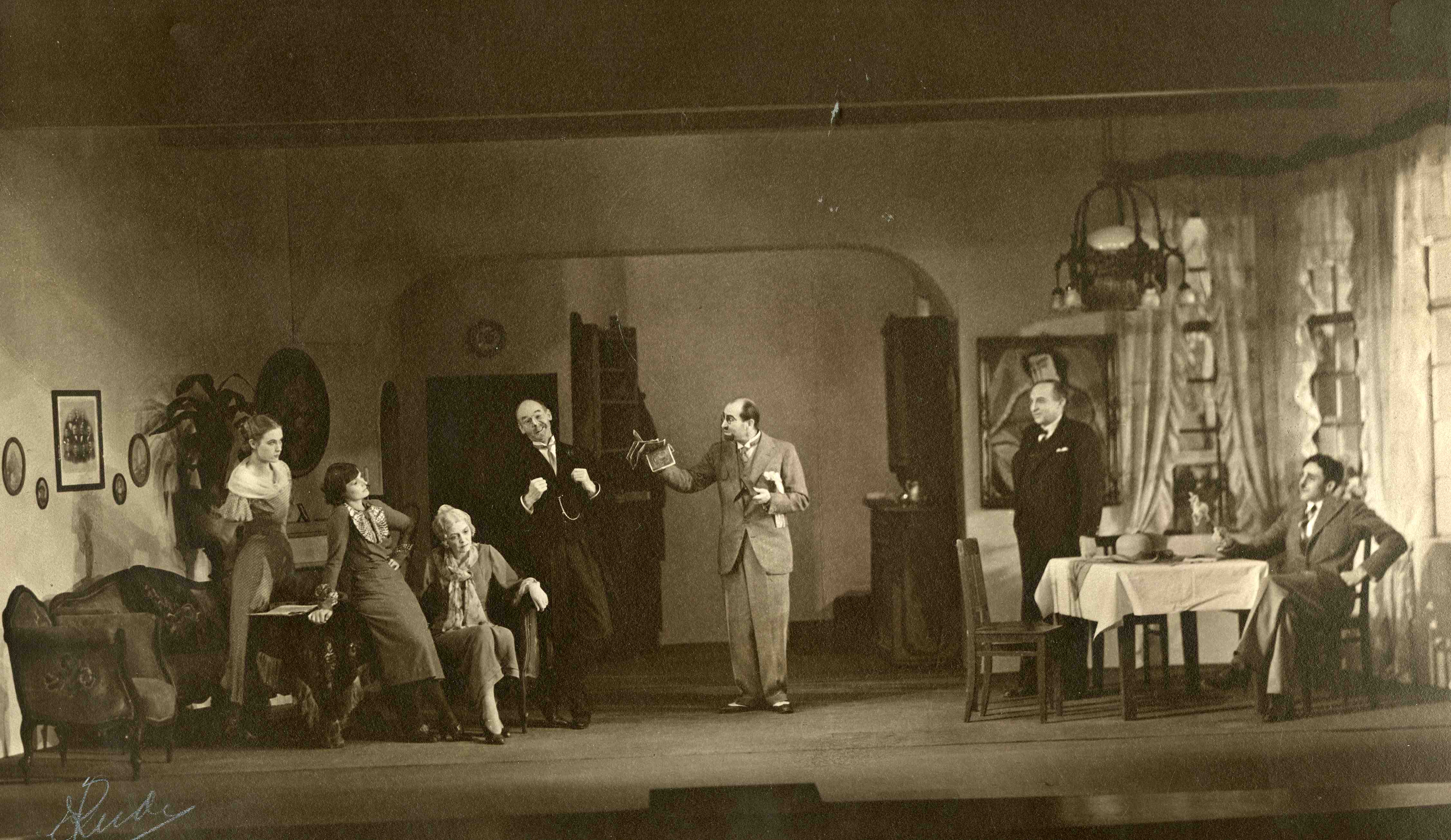 Fotografi fra Det Nye Teaters produksjon Obs! Nymalt (1934)